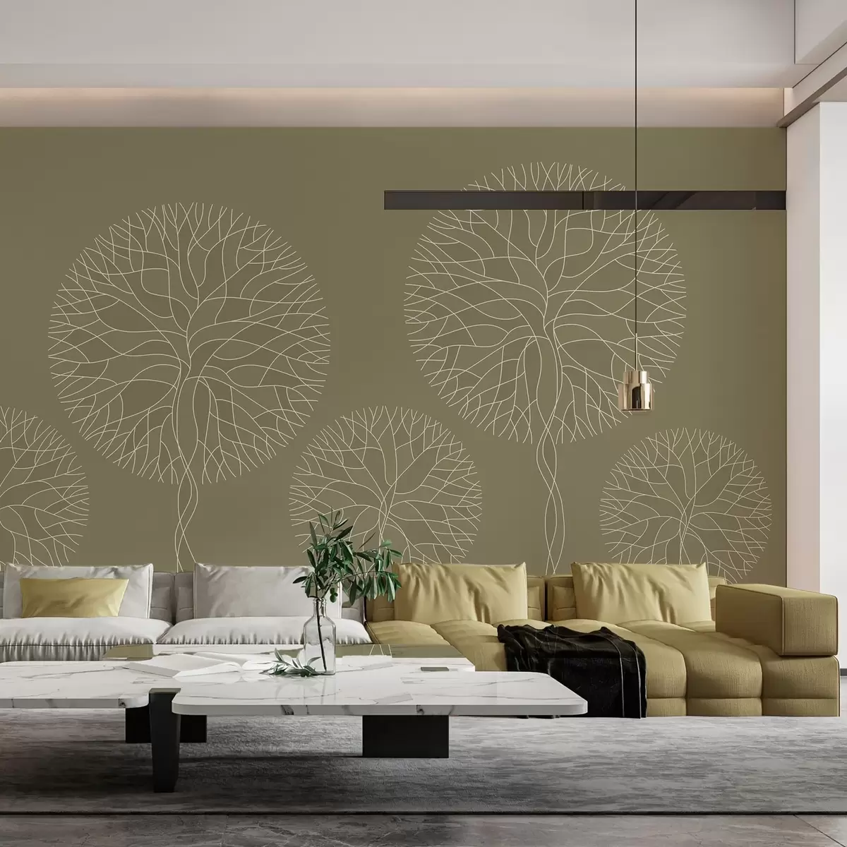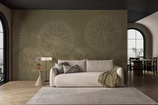 Fantasy linear trees with lush crowns in khaki tones - Wall mural (No. w05213v7)