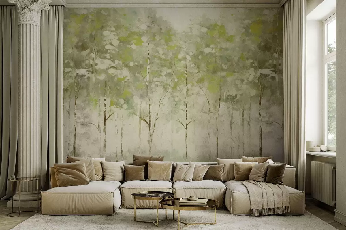 Stylized forest with slender trees in green tones - Wall mural (No. w05221v1)