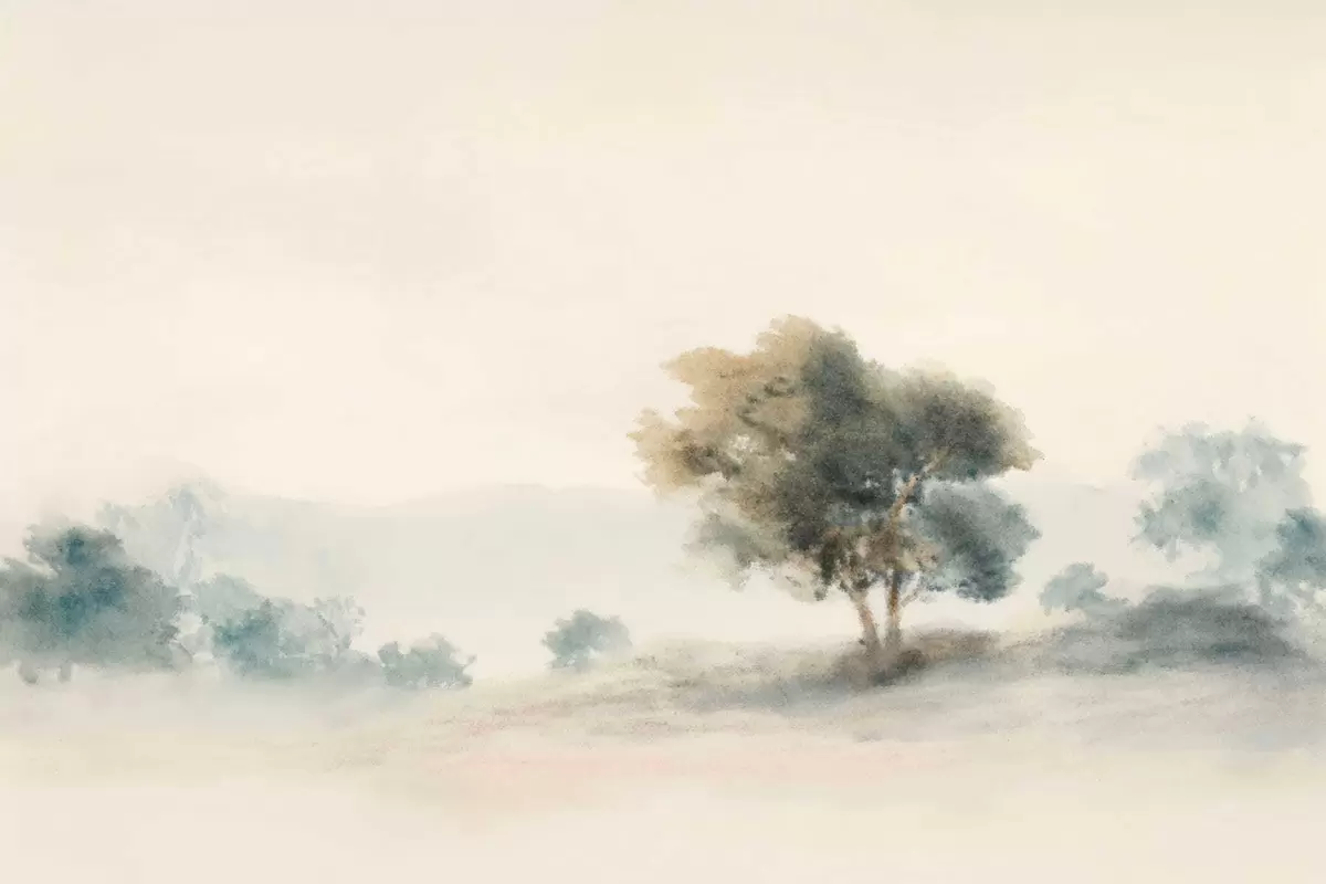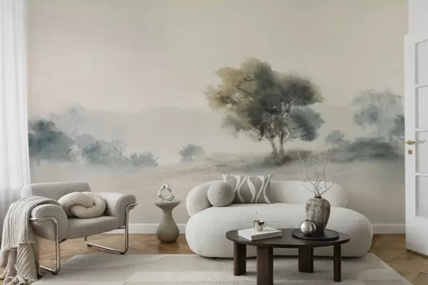 Calm landscape with a tree and soft blurred forms - Wall mural (No. w05223v1)