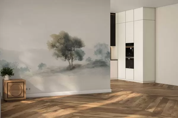 Calm landscape with a tree and soft blurred forms - Wall mural (No. w05223v1)