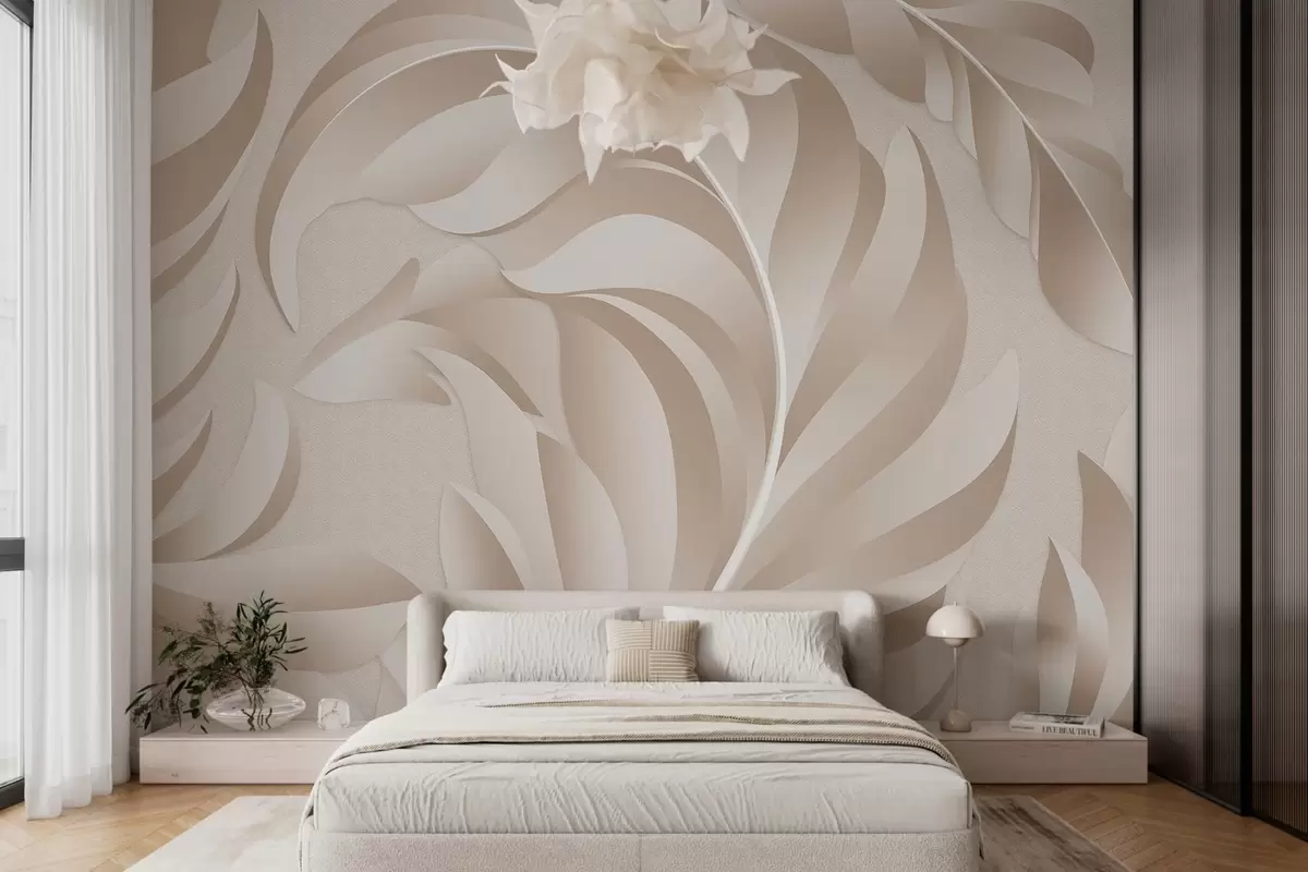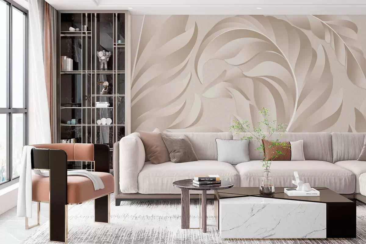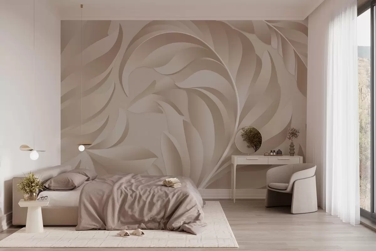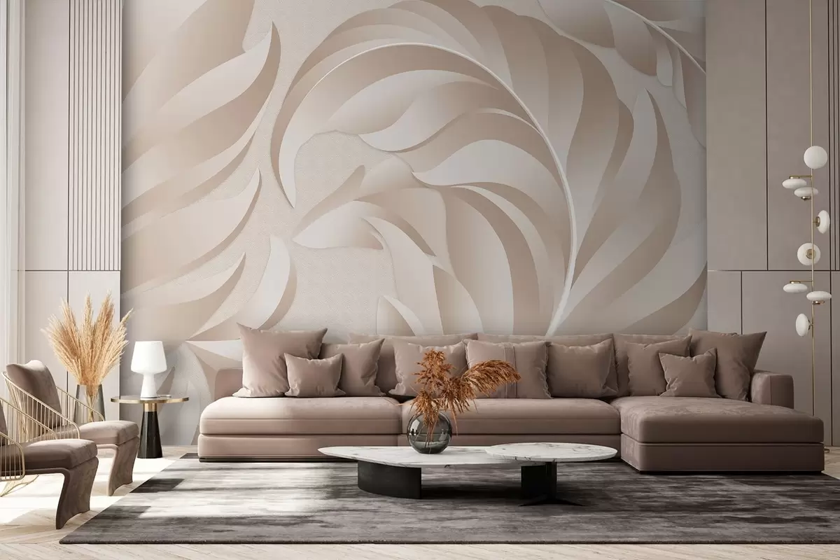 large textured feathers in beige and powder shades - Wall mural (No. w05231)