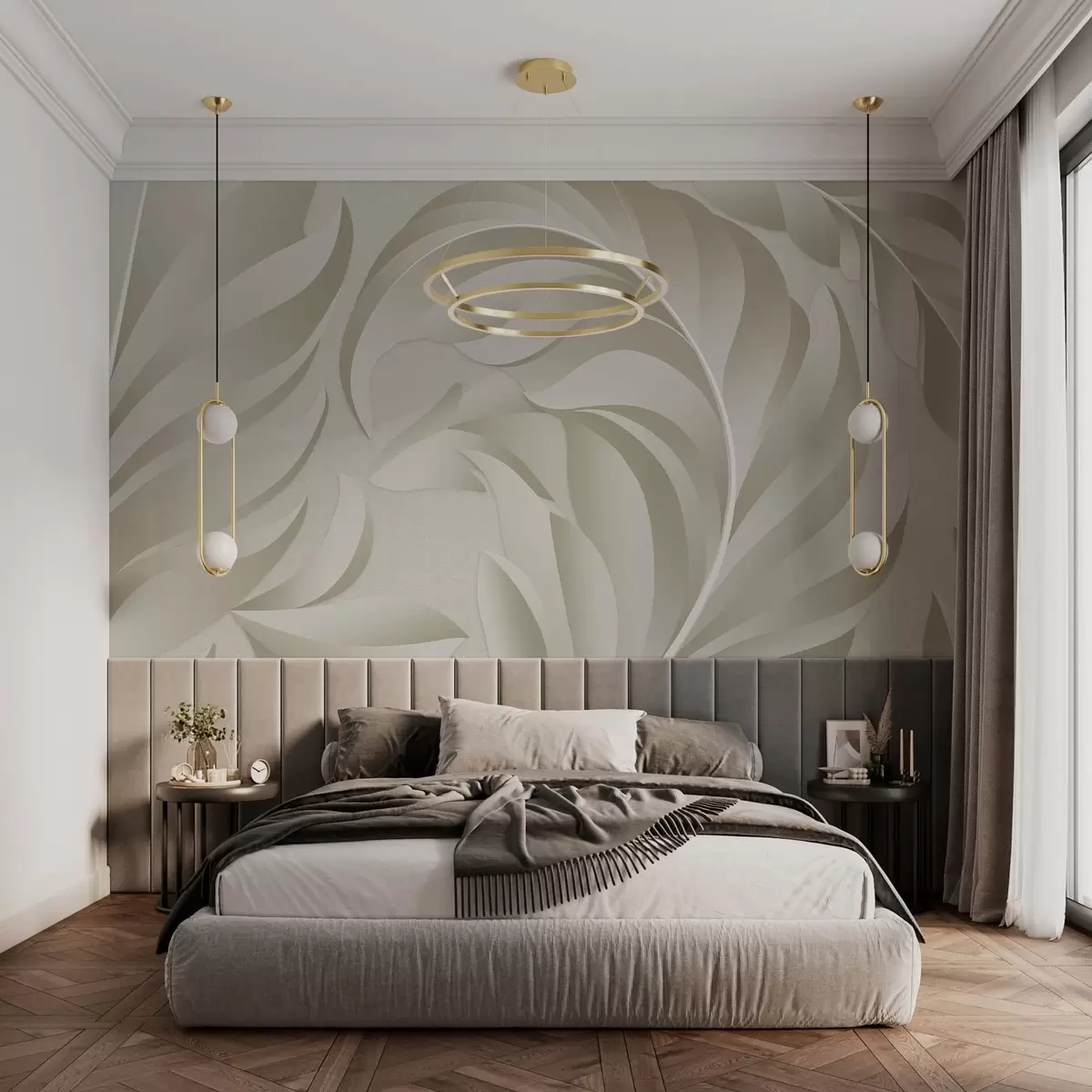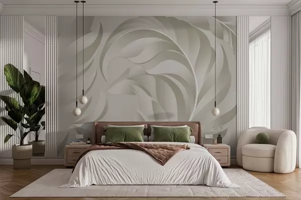 large textured feathers in beige and olive shades - Wall mural (No. w05231v1)