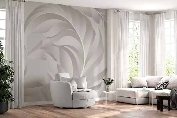 large textured feathers in pearlescent shades - Wall mural (No. w05231v2)