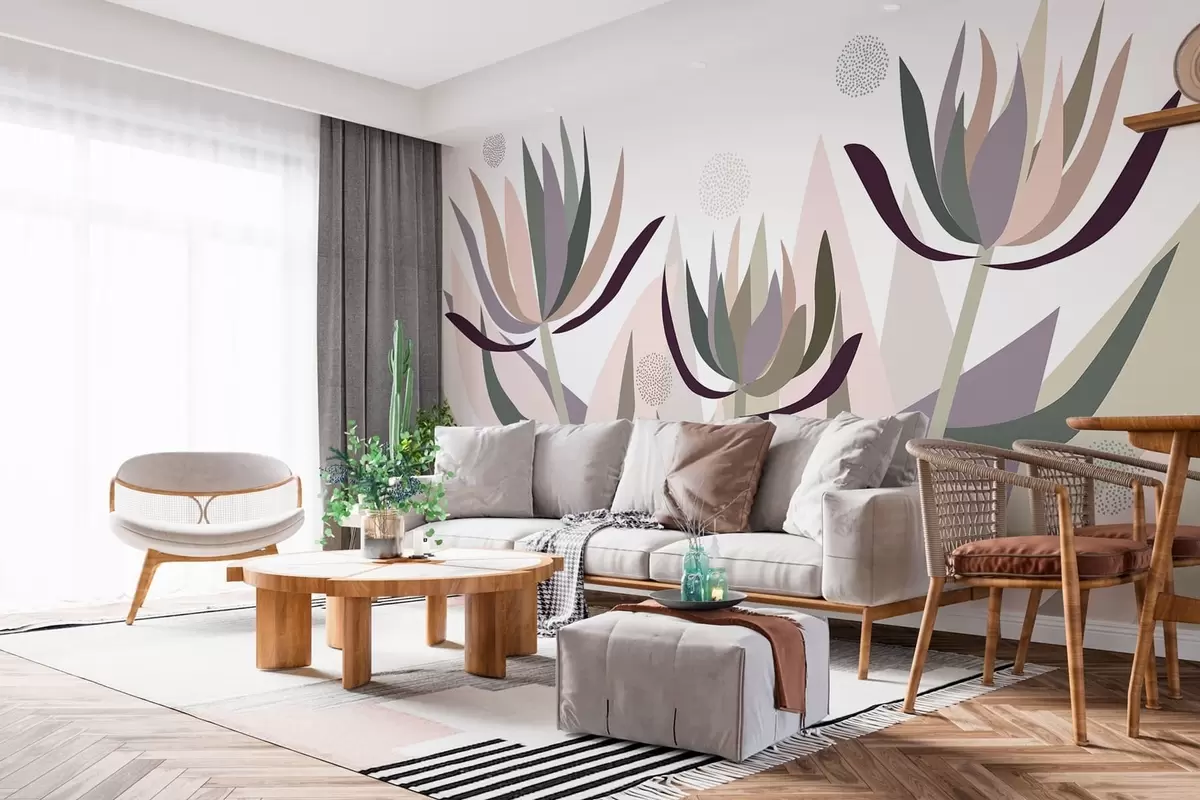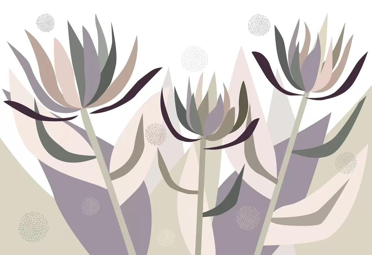 stylised protea flowers in a primitive style - Wall mural (No. w05236)