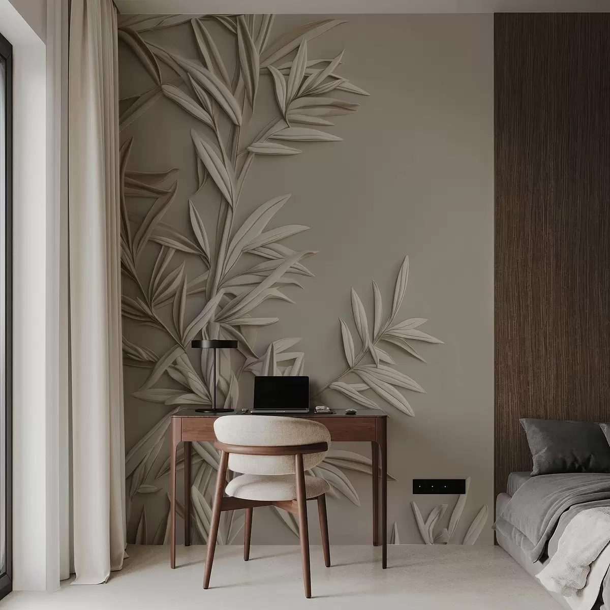 Imitation of bas-relief leaves - Wall mural (No. w05244)