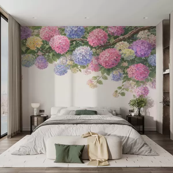 Painted hydrangeas hang down - Wall mural (No. w05250)