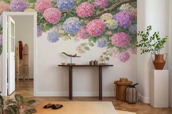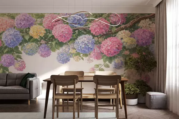 Painted hydrangeas hang down - Wall mural (No. w05250)