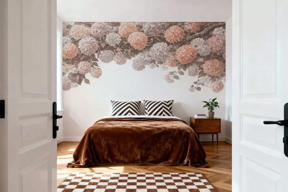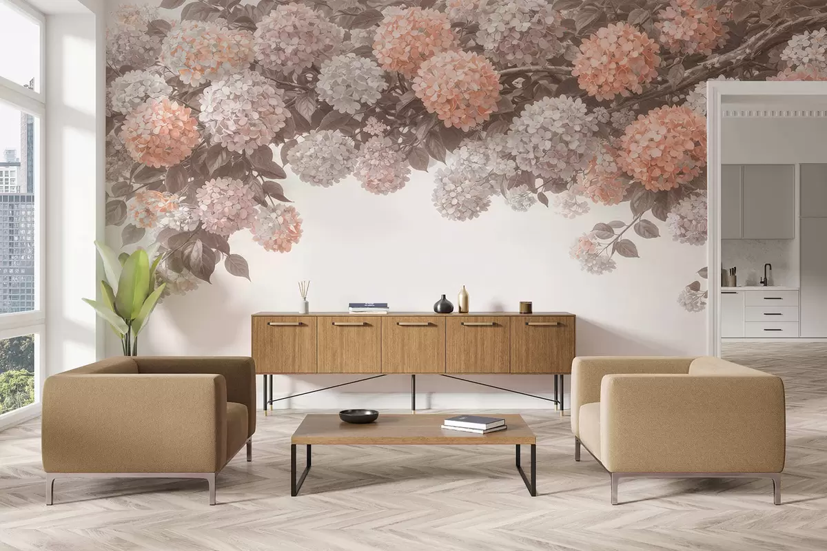 Painted hydrangeas hang down - Wall mural (No. w05250v1)