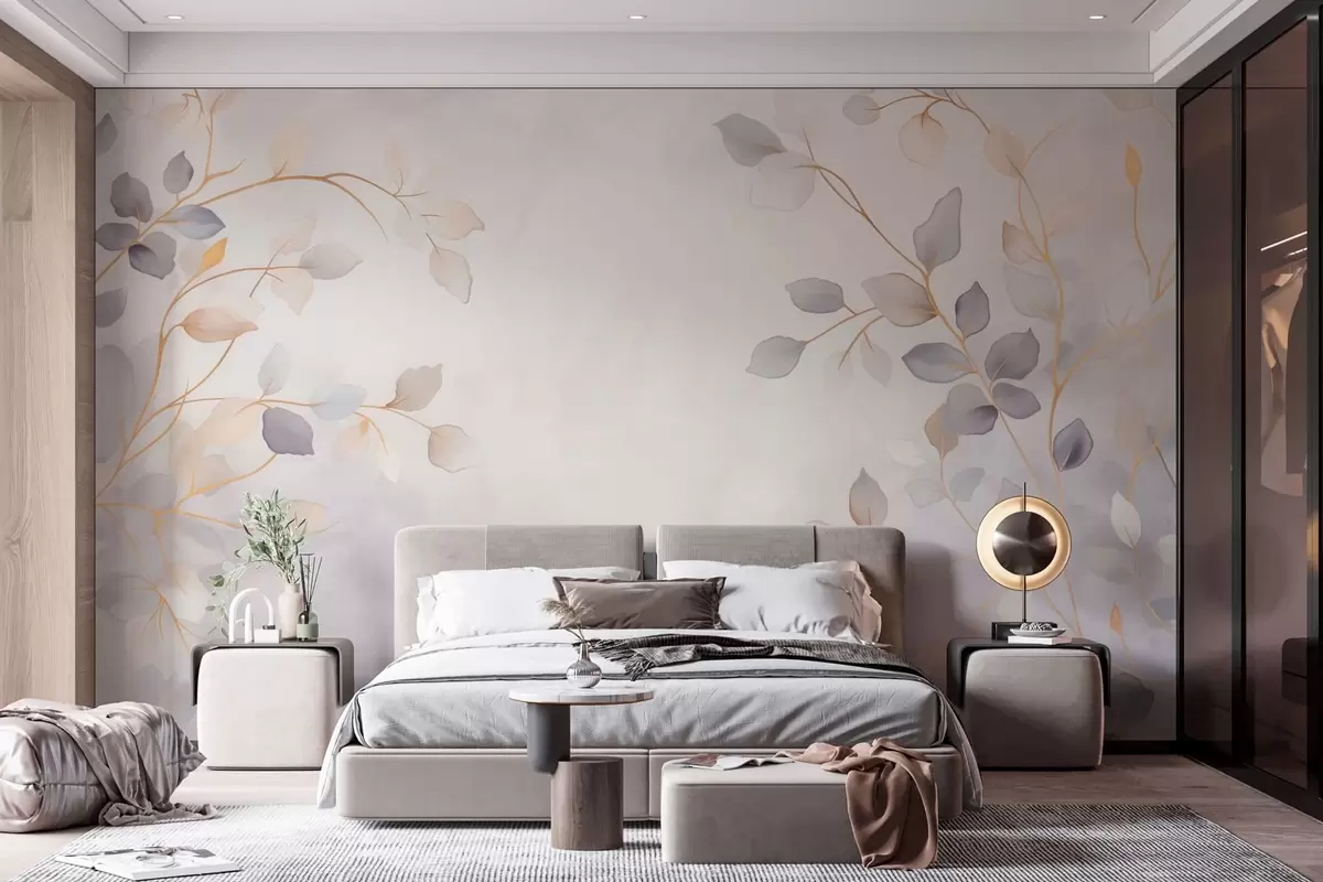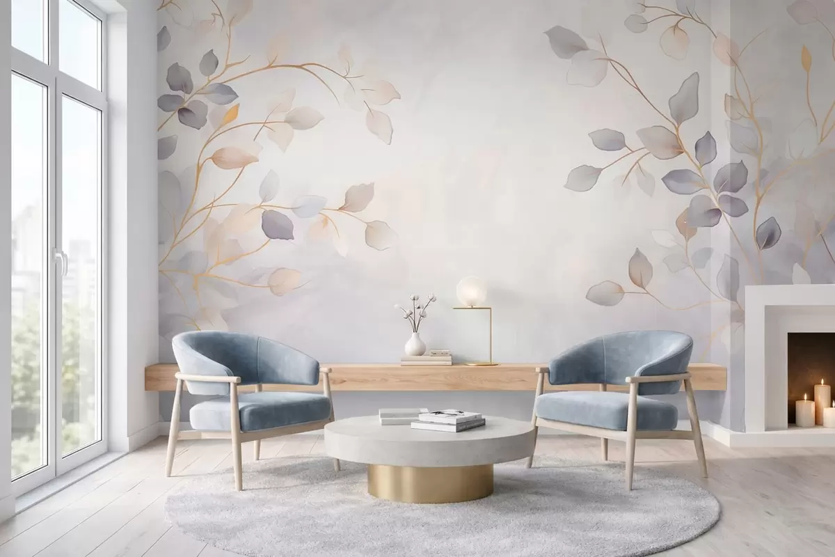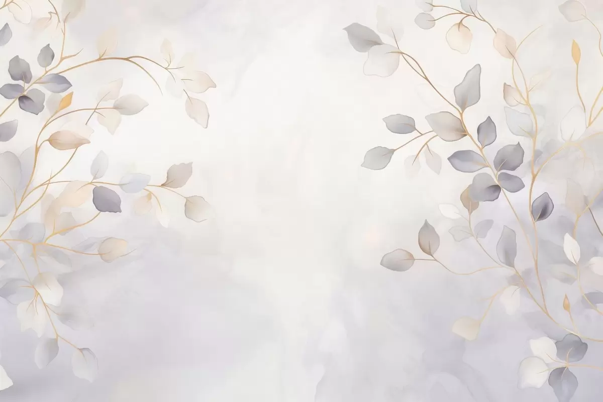 Delicate leafy branches on a soft blurred background - Wall mural (No. w05296)