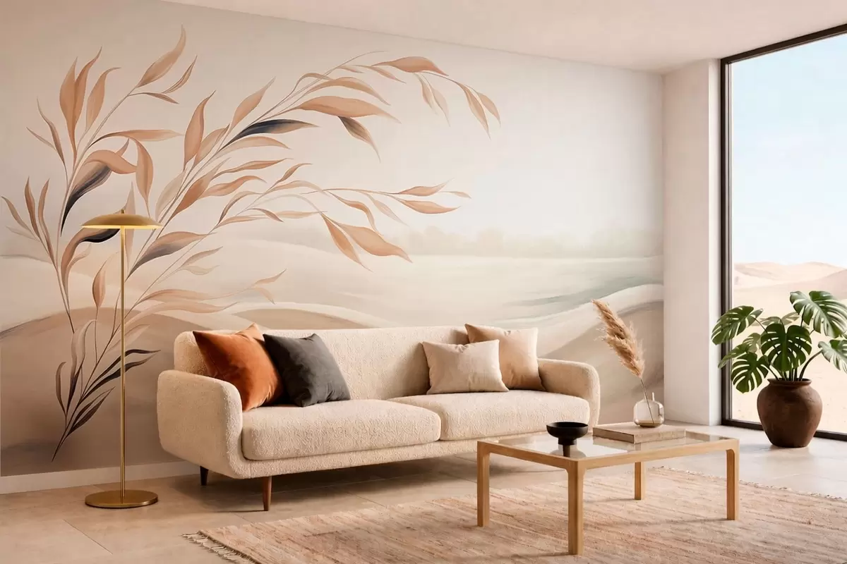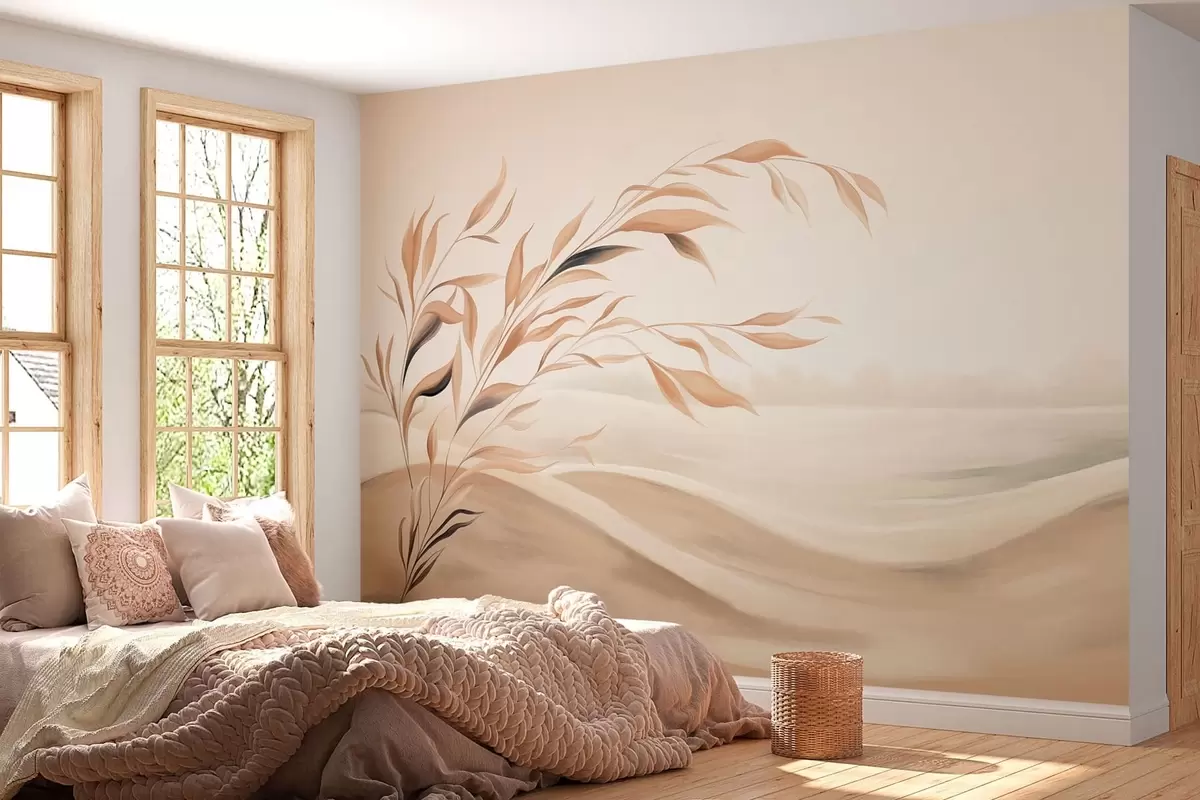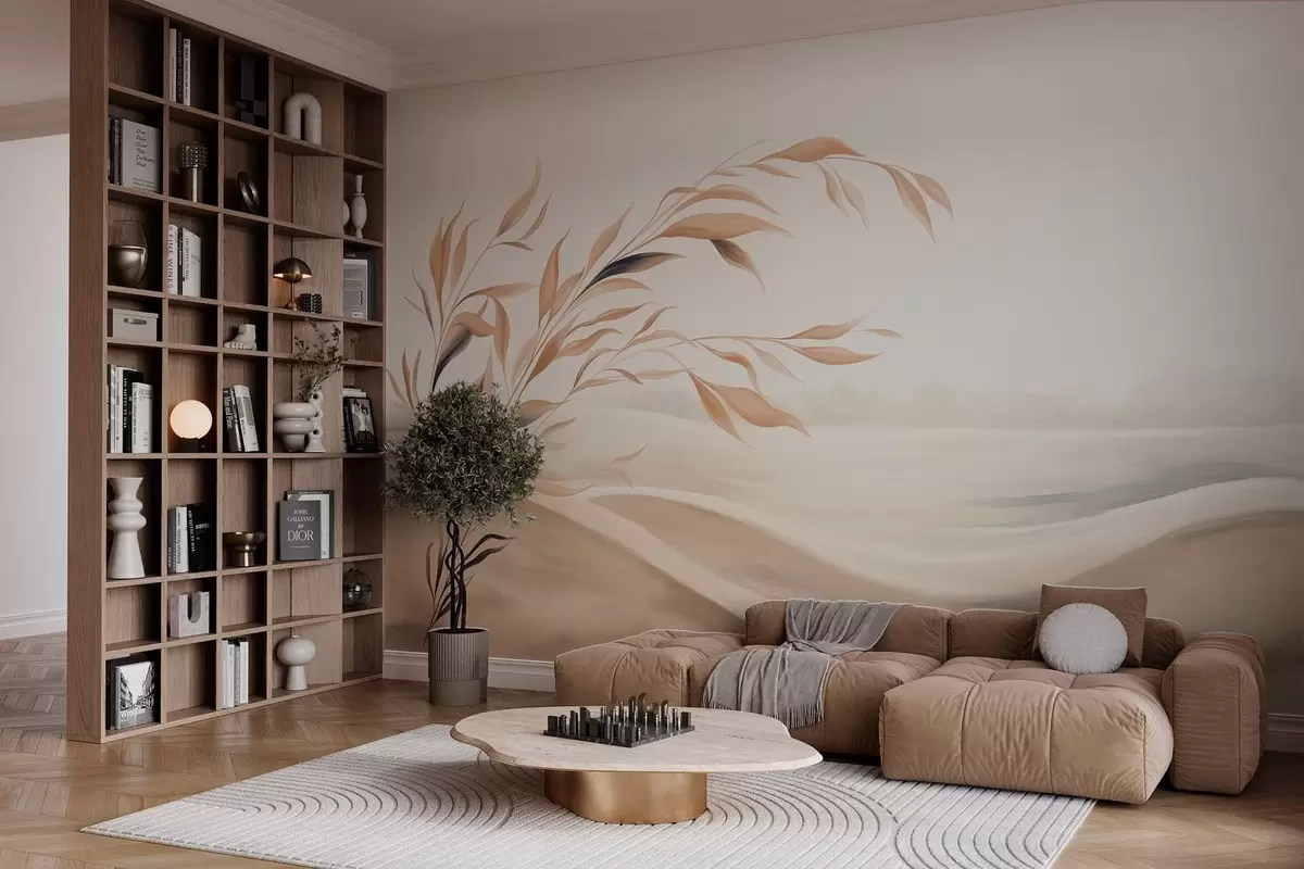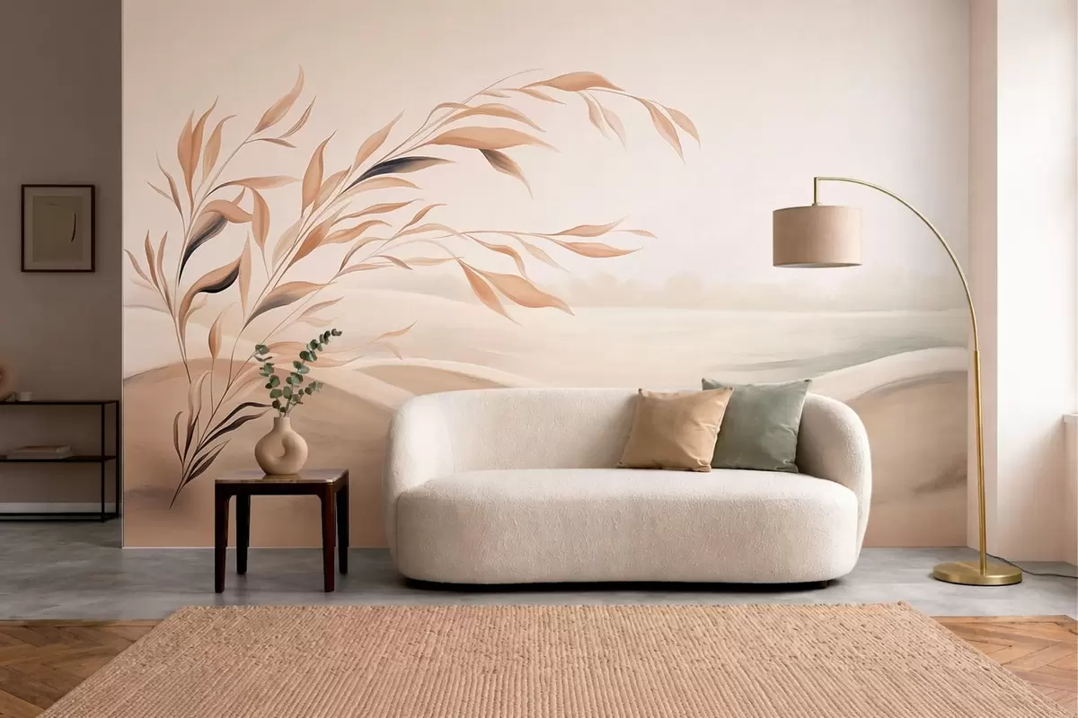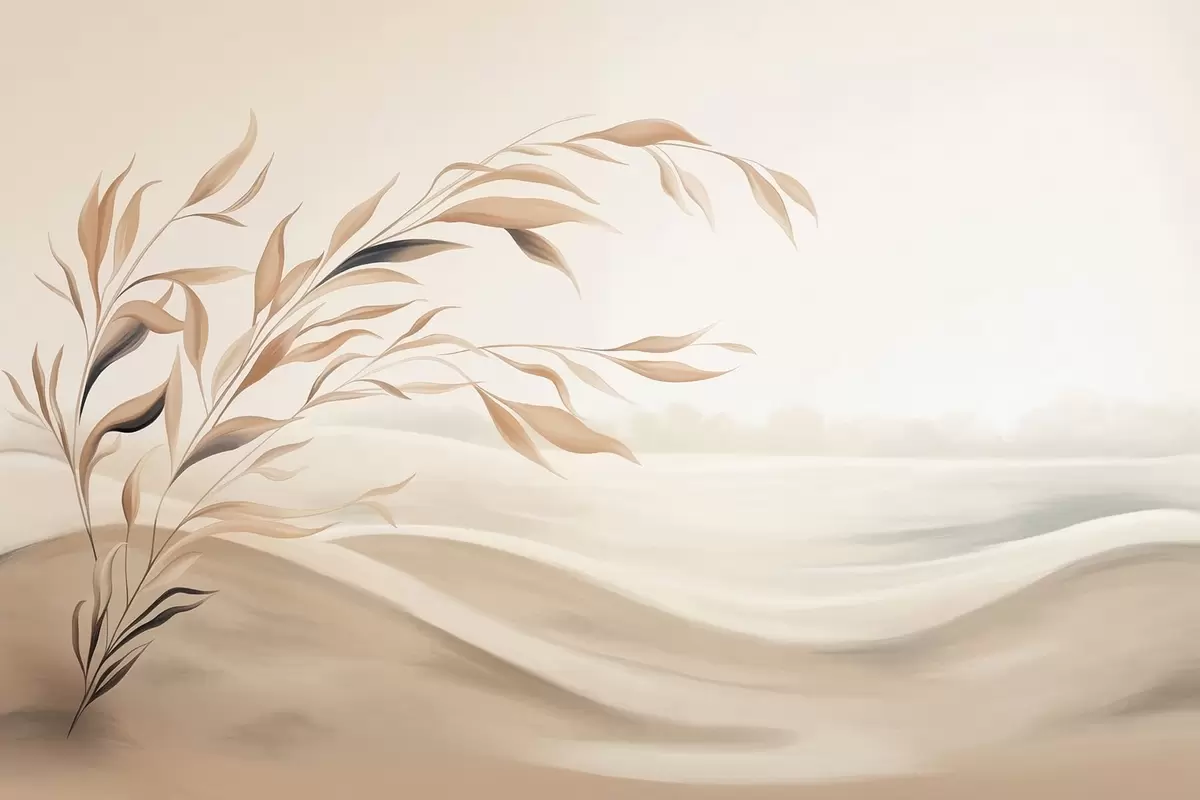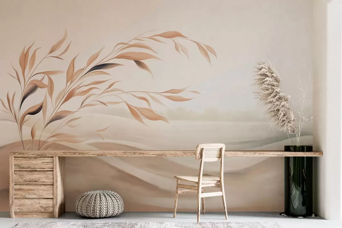 A soft landscape with a branch over hills in light beige tones - Wall mural (No. w05297)