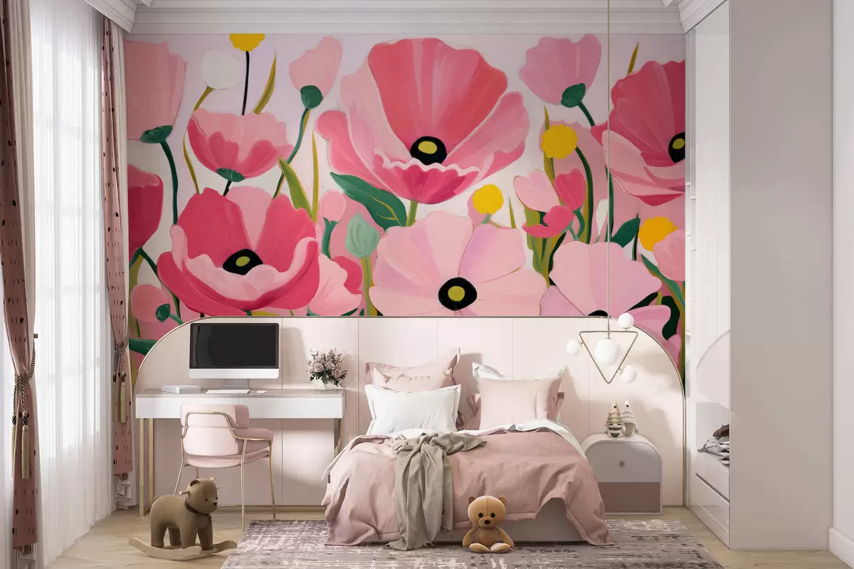 Succulent poppies - Wall mural (No. w05316)