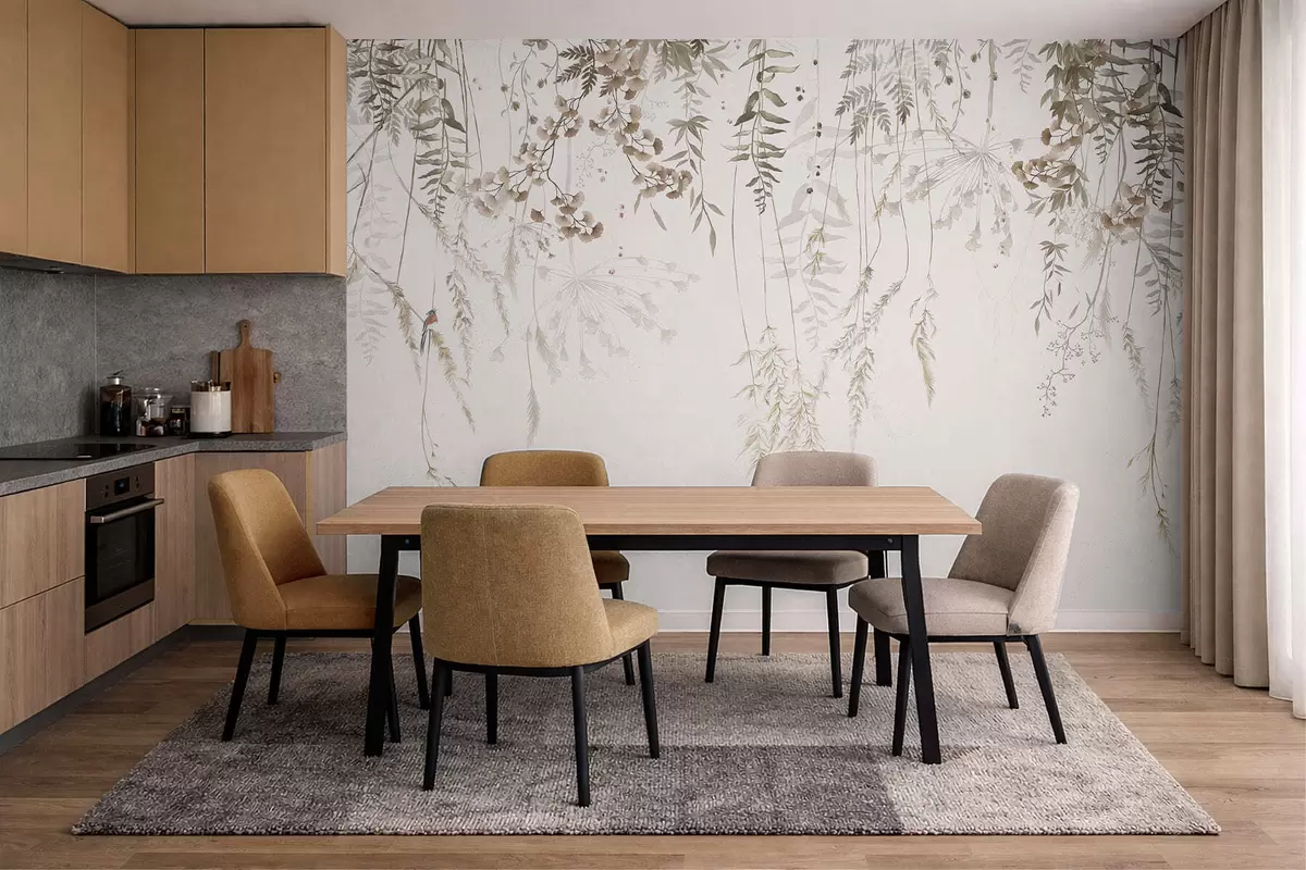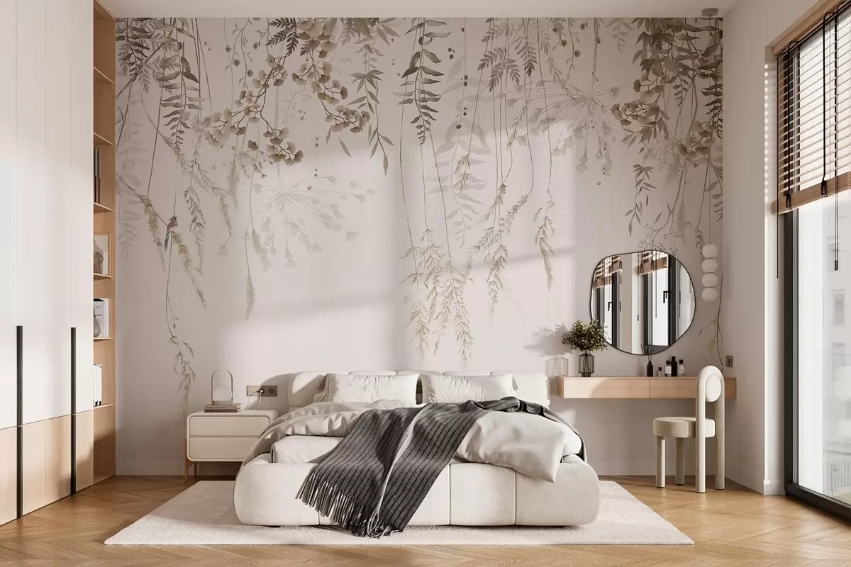 Hanging wild plants on a light background - Wall mural (No. w05320)