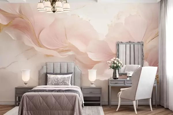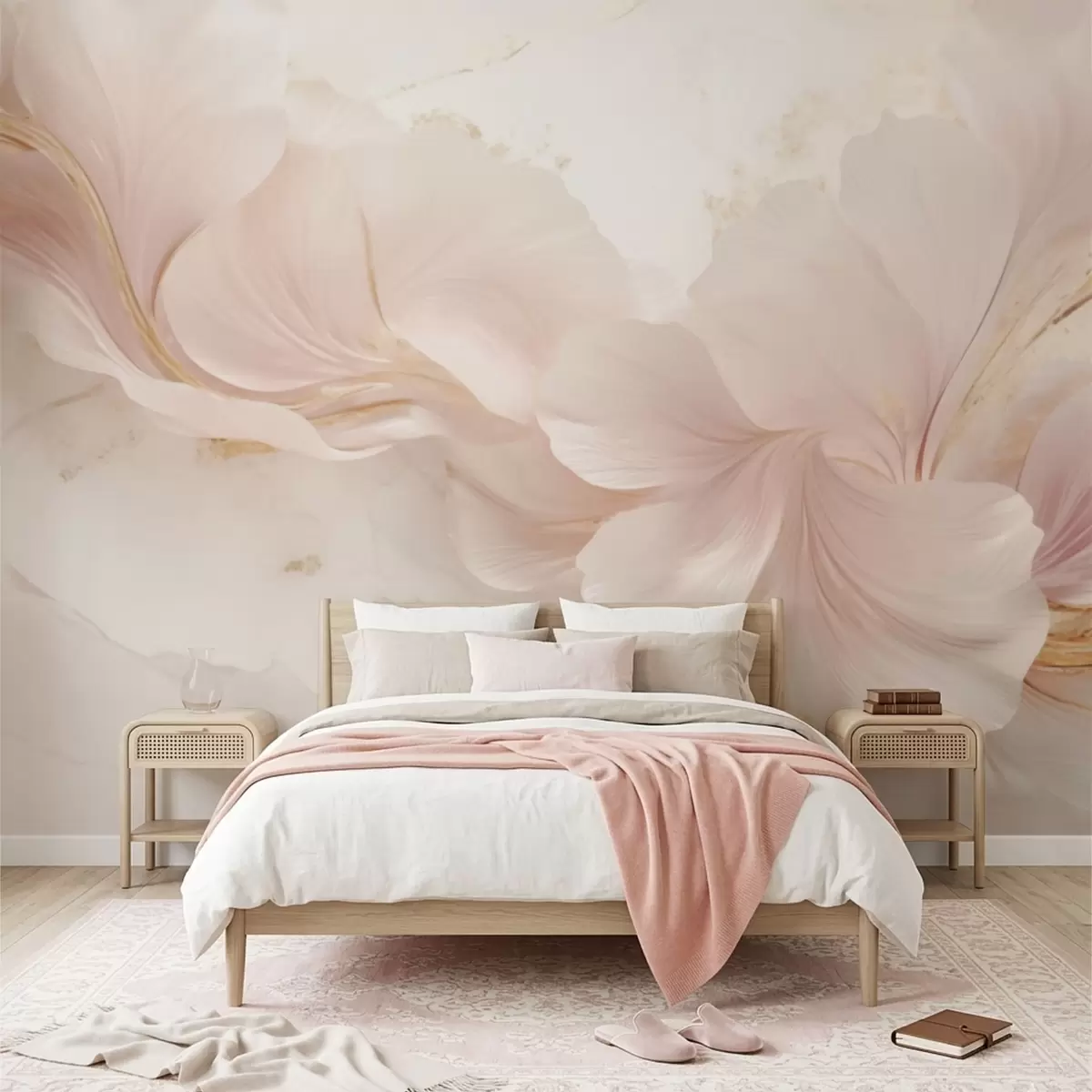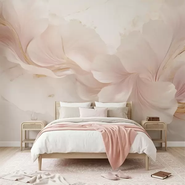 Soft pink flowers on a light background - Wall mural (No. w05357)