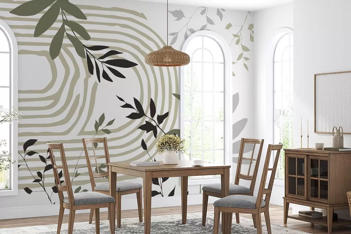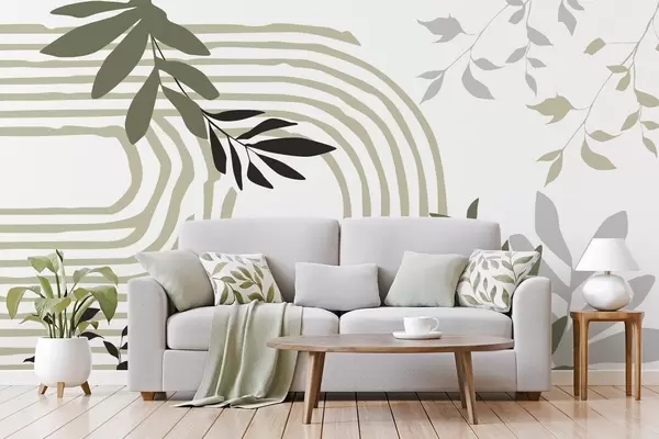 Abstract plant silhouettes and lines - Wall mural (No. w05374v1)