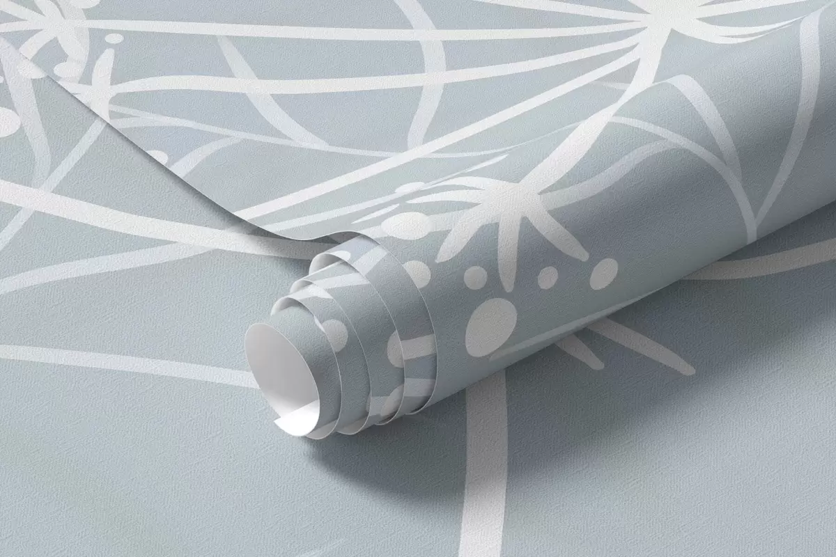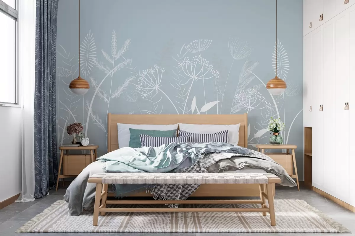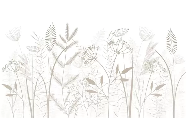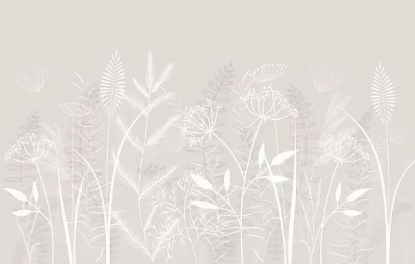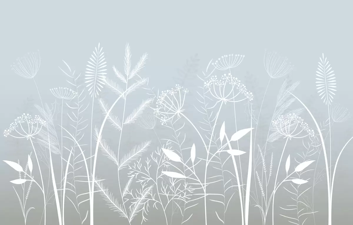 delicate hand-painted wild grasses and flowers against a grey-blue background - Wall mural (No. w05383)