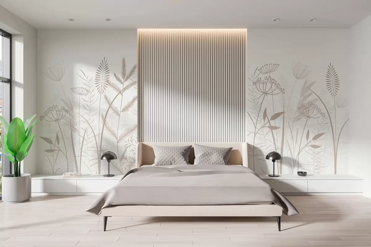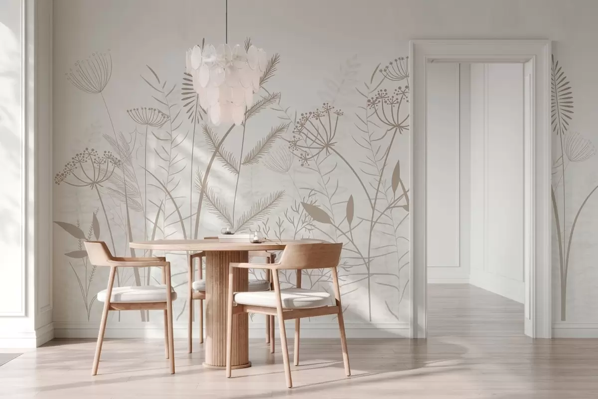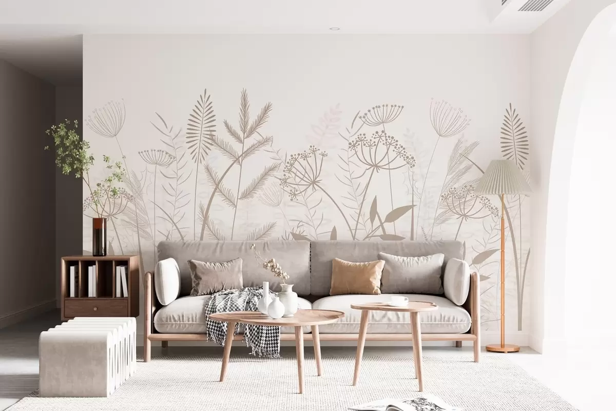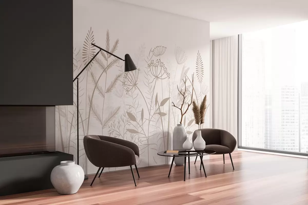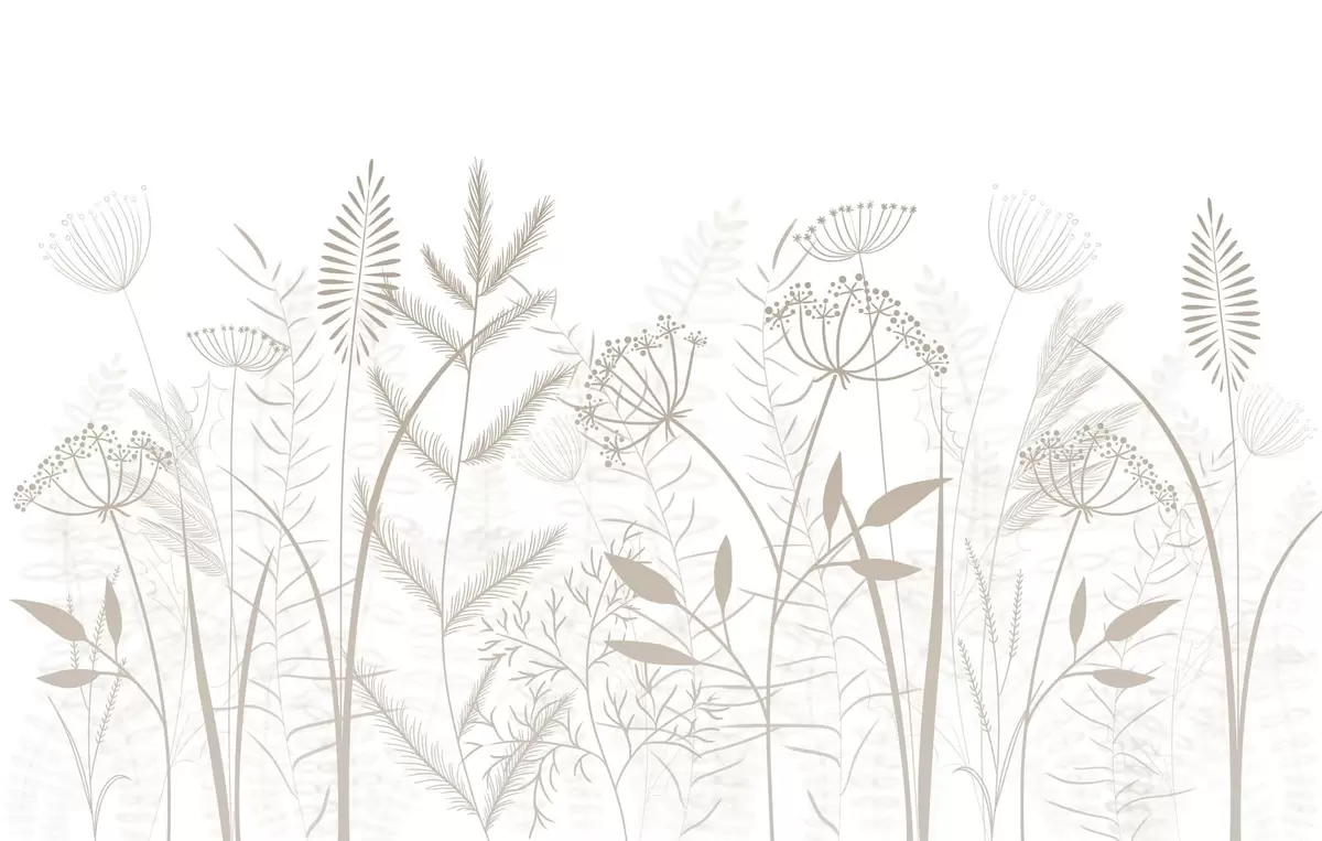 delicate hand-painted wild grasses and flowers against a white background - Wall mural (No. w05383v2)