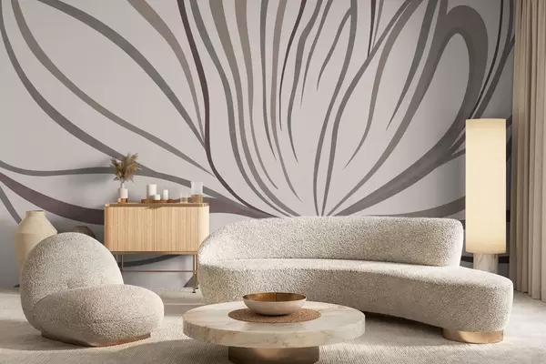 Abstract flower with lines in gray and pink tones - Wall mural (No. w05392)