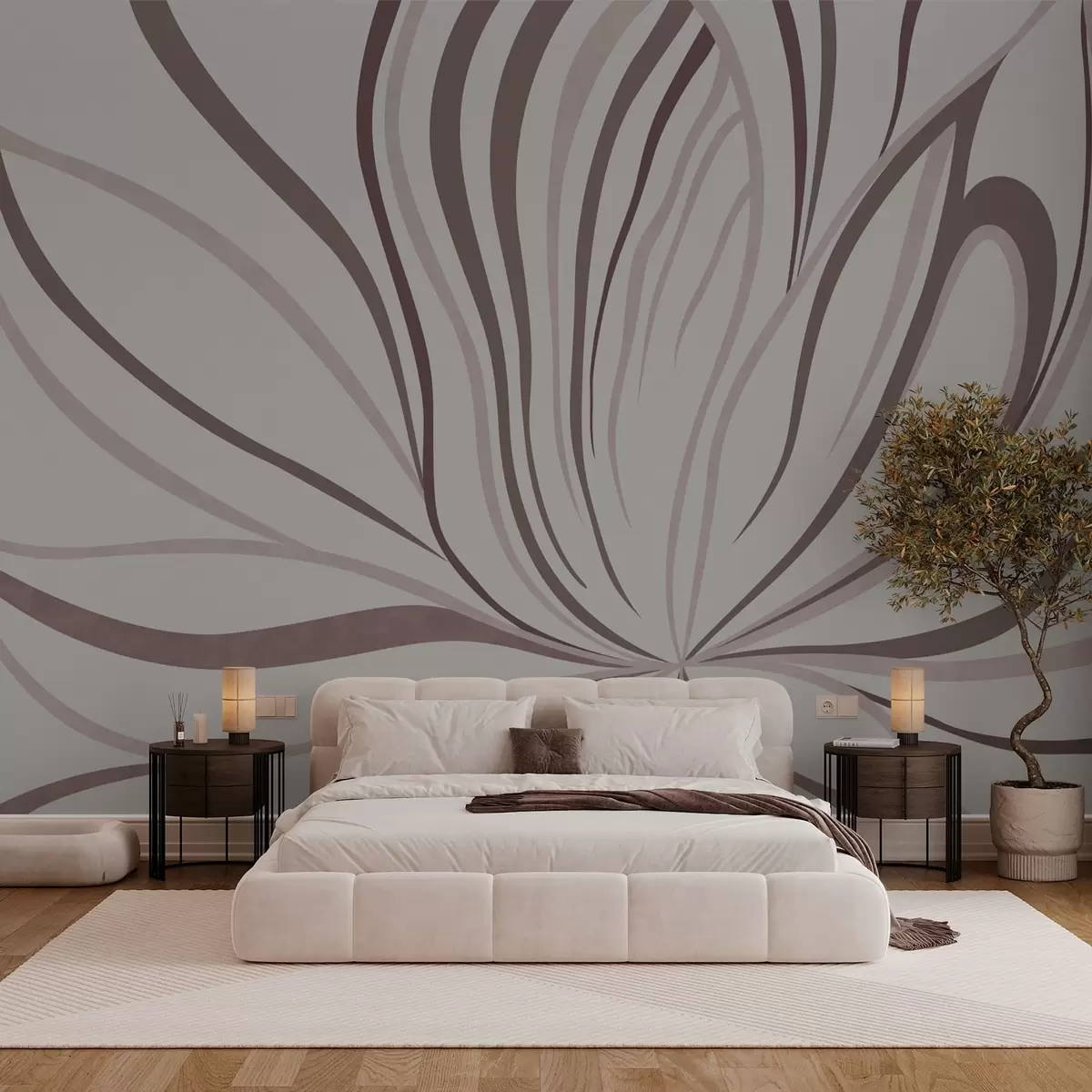 Stylized flower with soft lines in pink beige tones - Wall mural (No. w05392v1)