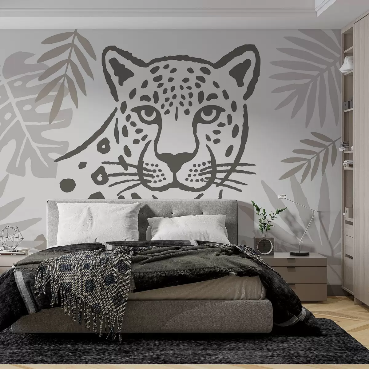Leopard in the leaves - Wall mural (No. w05396)