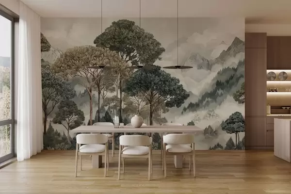 Mountain landscape with forest in soft tones - Wall mural (No. w05410v1)