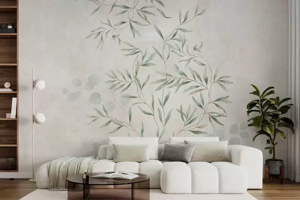 Delicate botanical pattern with thin branches on light background - Wall mural (No. w05424)