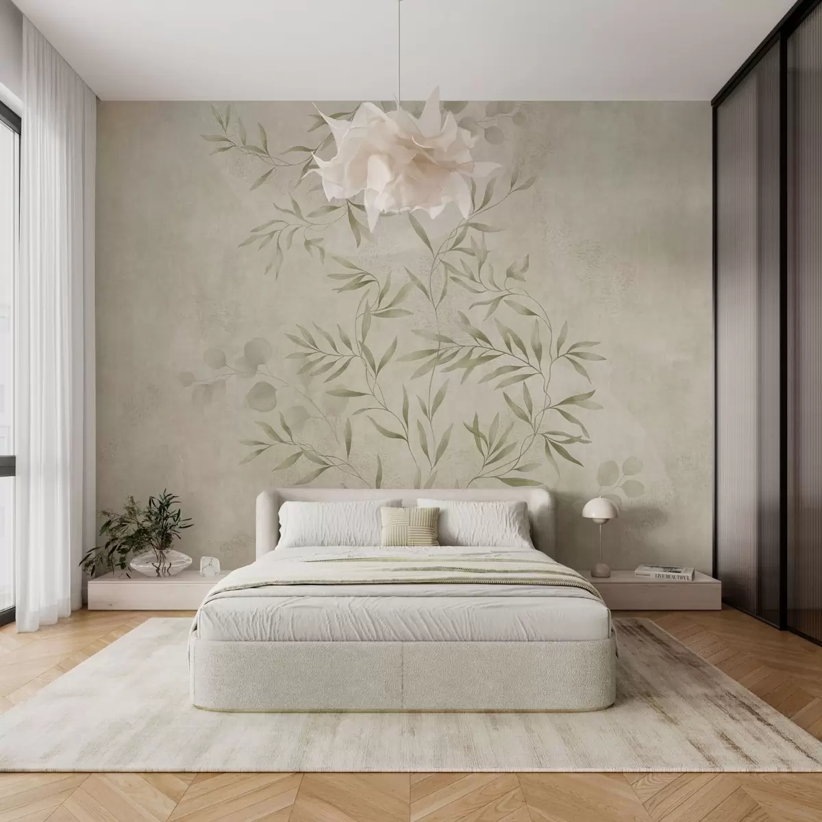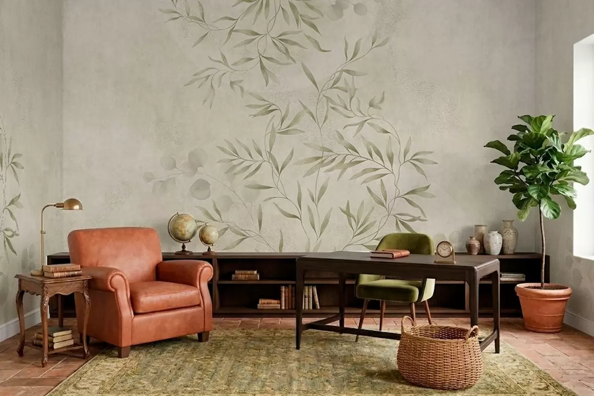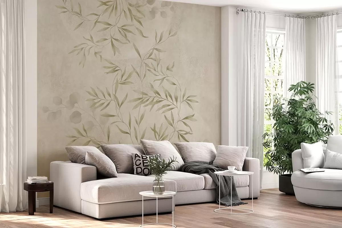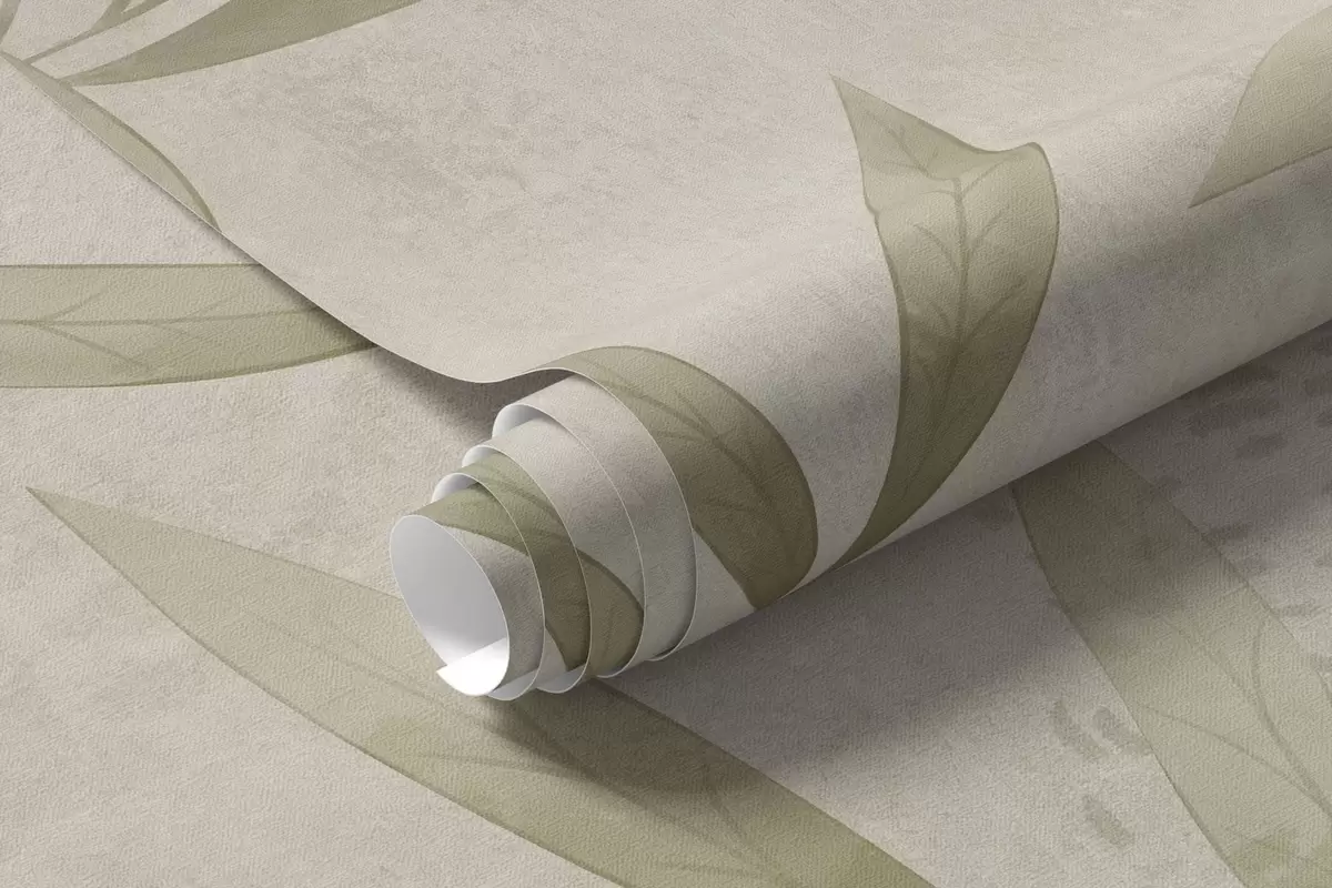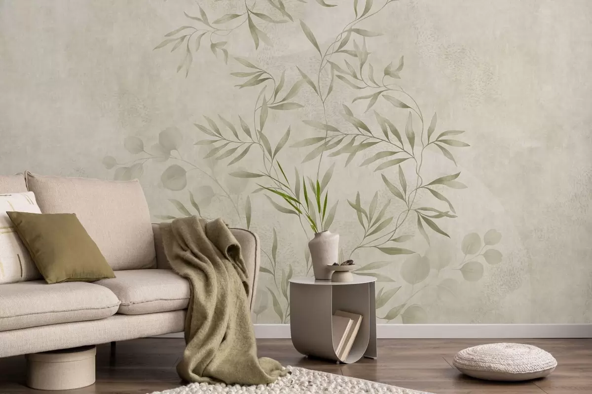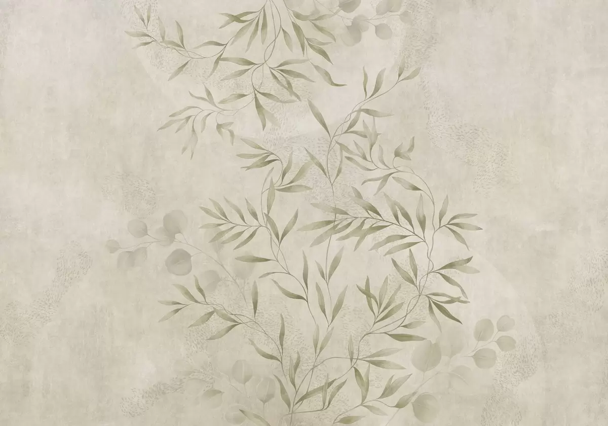 Botanical pattern in light green tones on textured background - Wall mural (No. w05424v1)