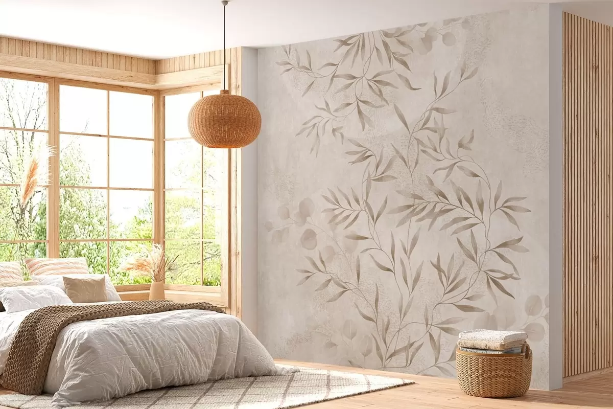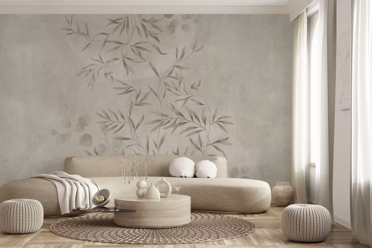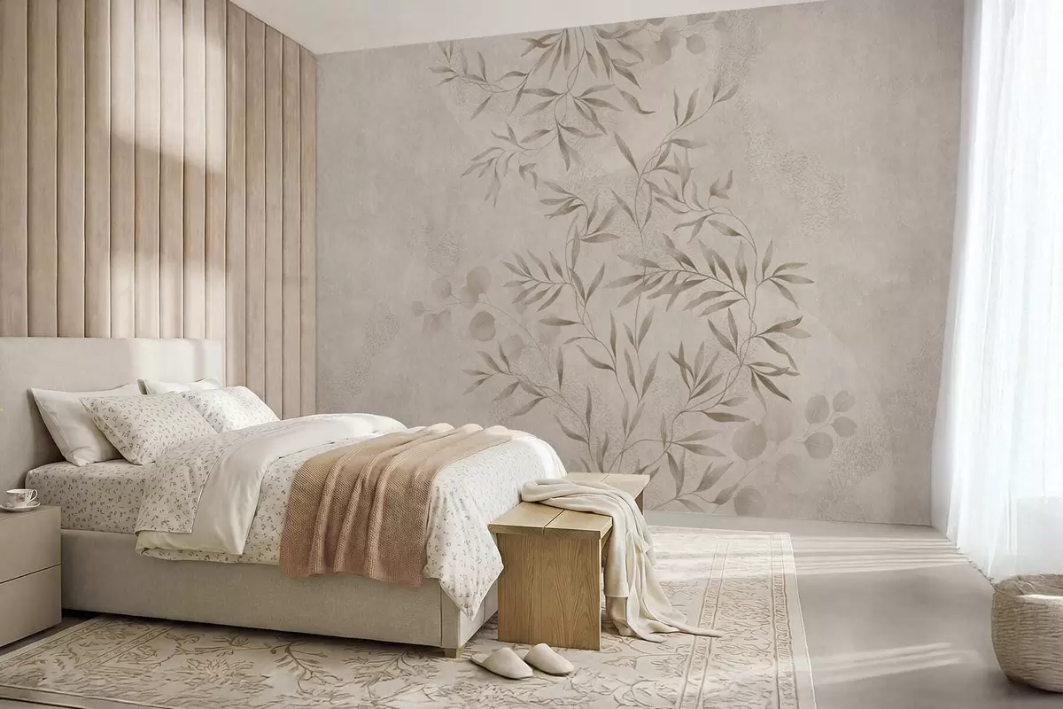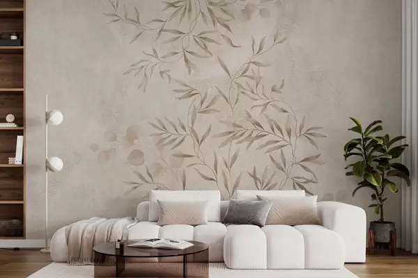 Botanical pattern in beige and brown shades - Wall mural (No. w05424v2)