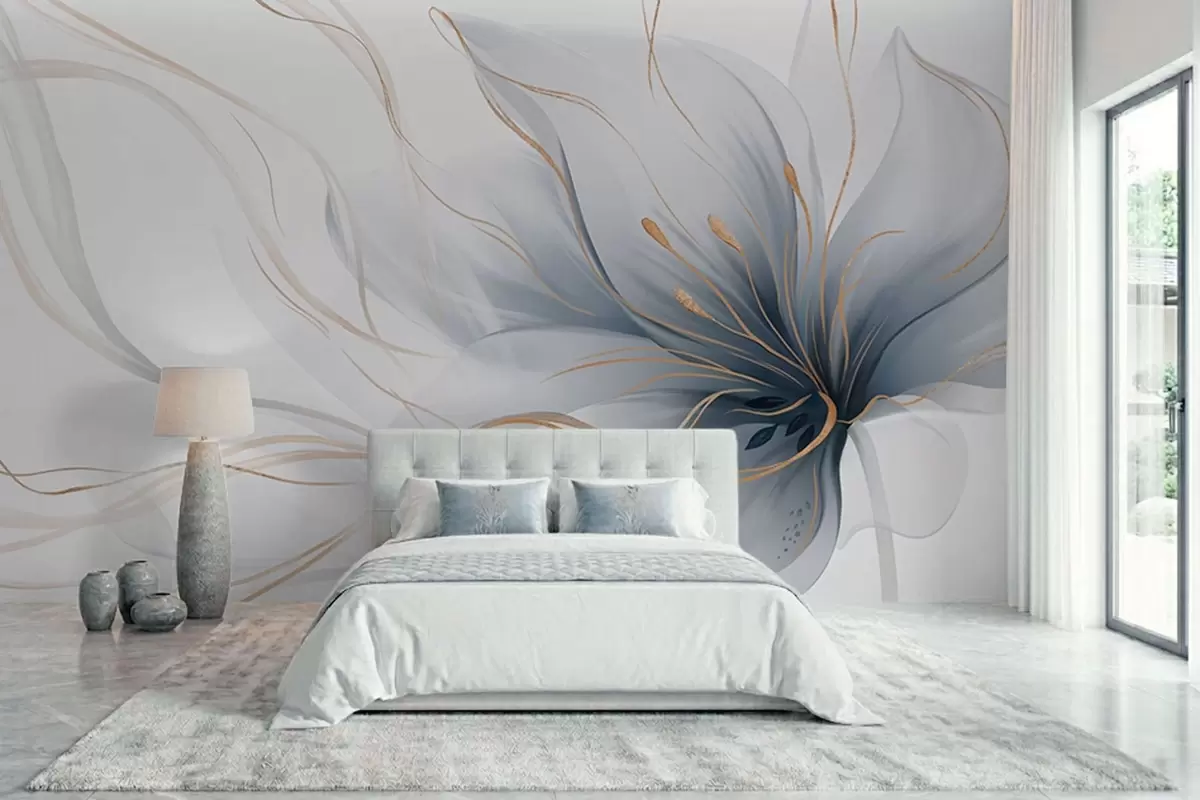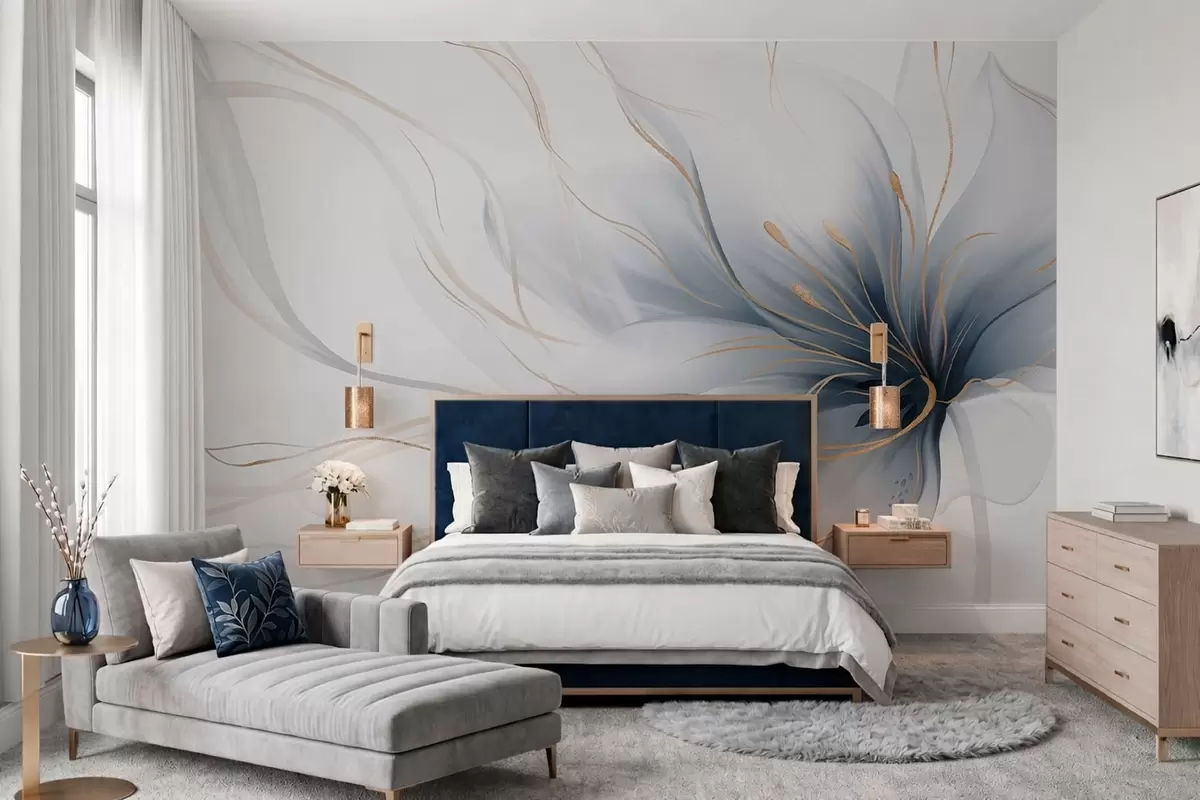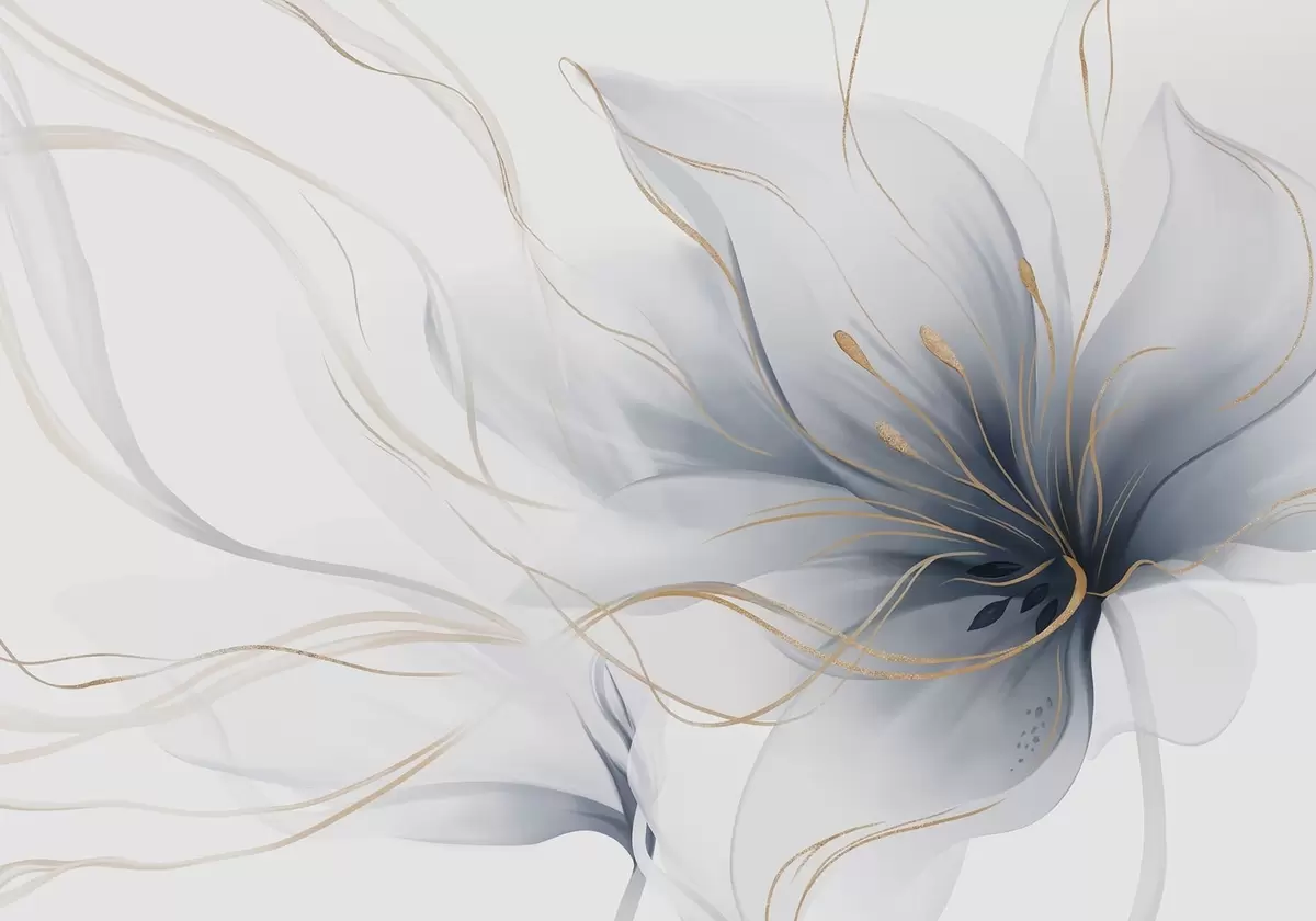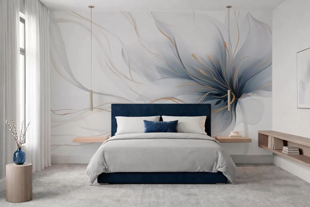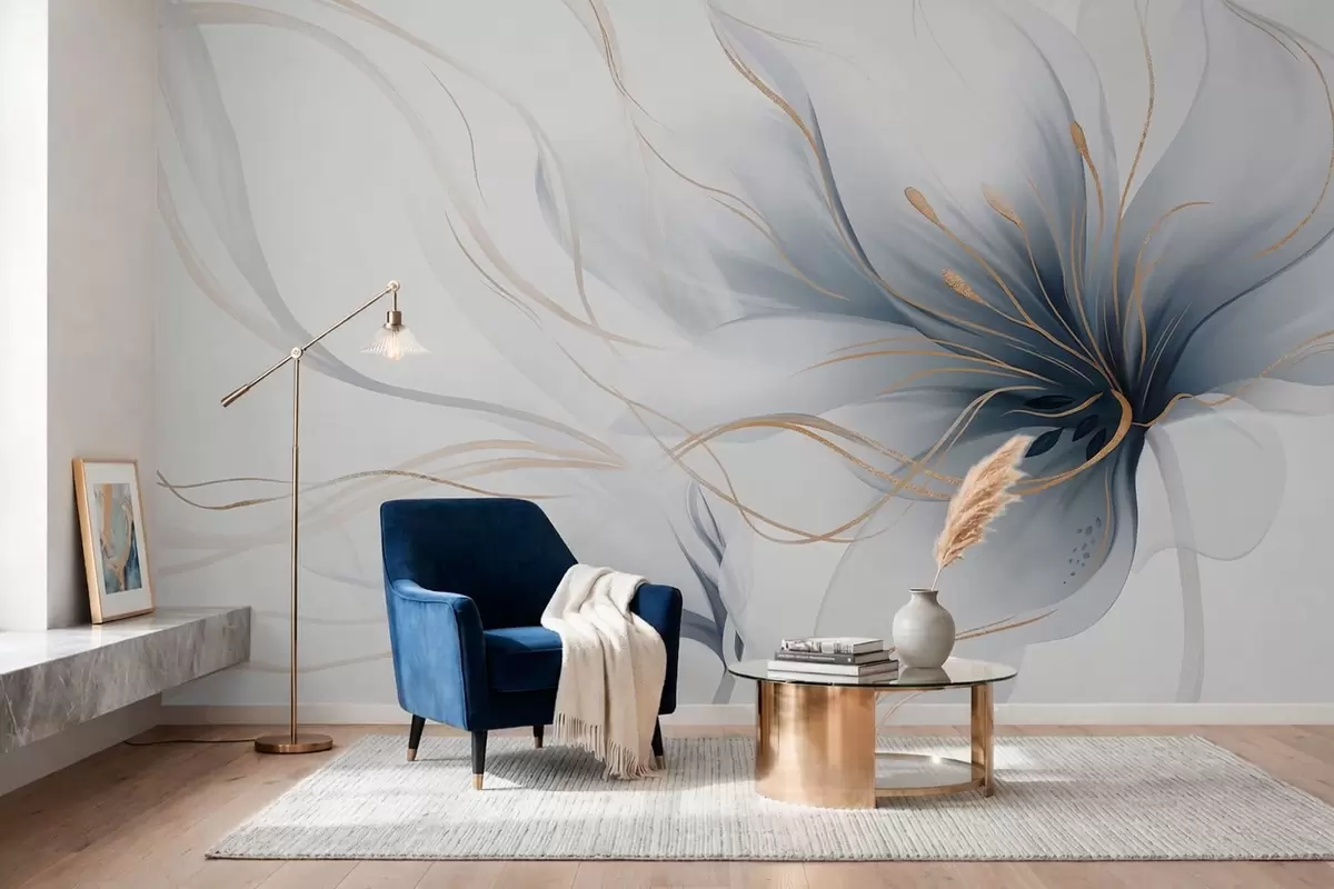 An abstract blue flower with flowing lines in the Fluid Art style - Wall mural (No. w05428)