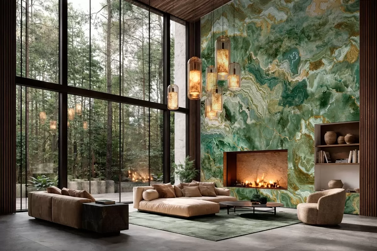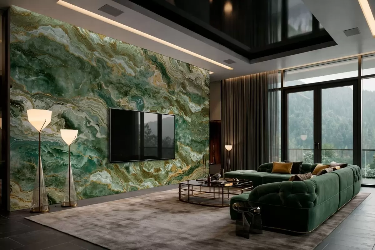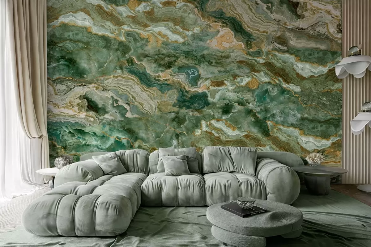 Green onyx texture with flowing layered veins - Wall mural (No. w05429)