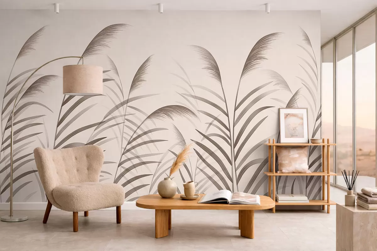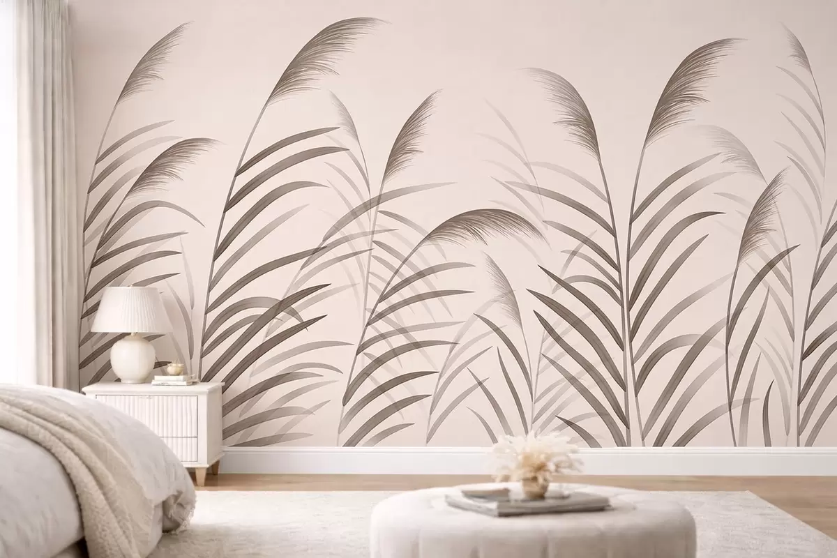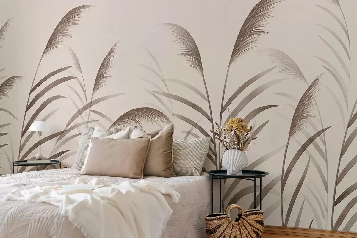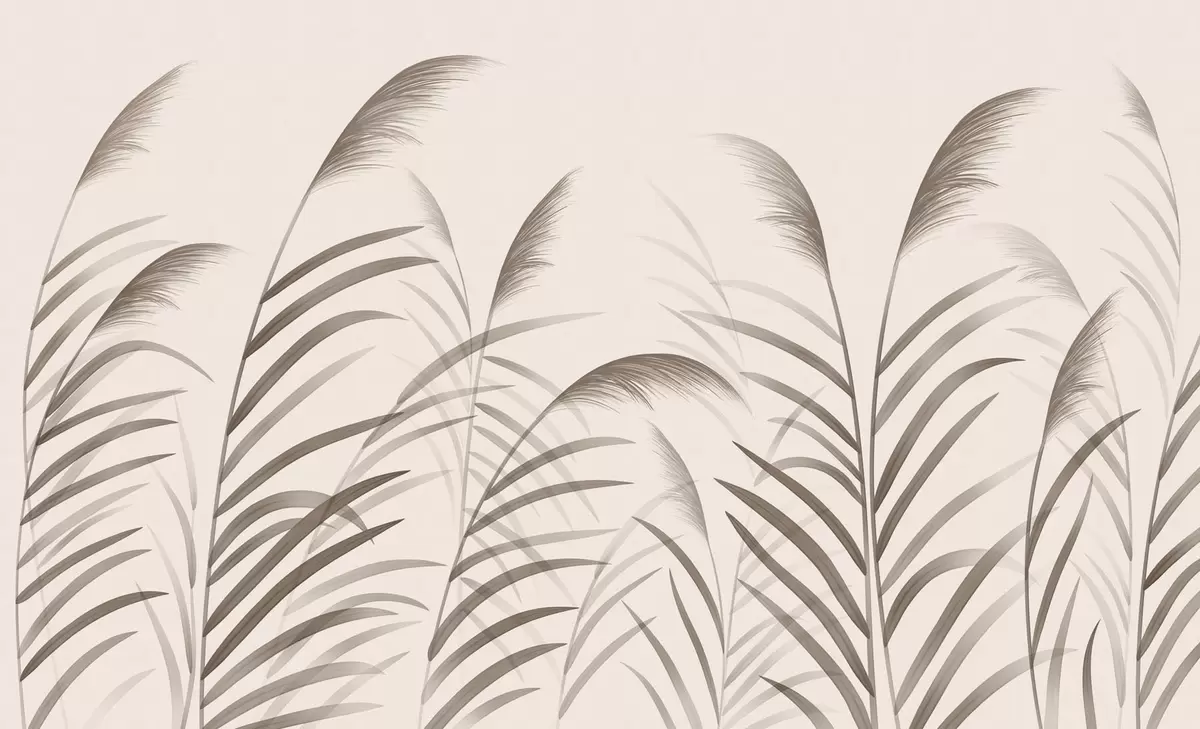 Minimalism reed silhouettes in beige tones - Wall mural (No. w05432)