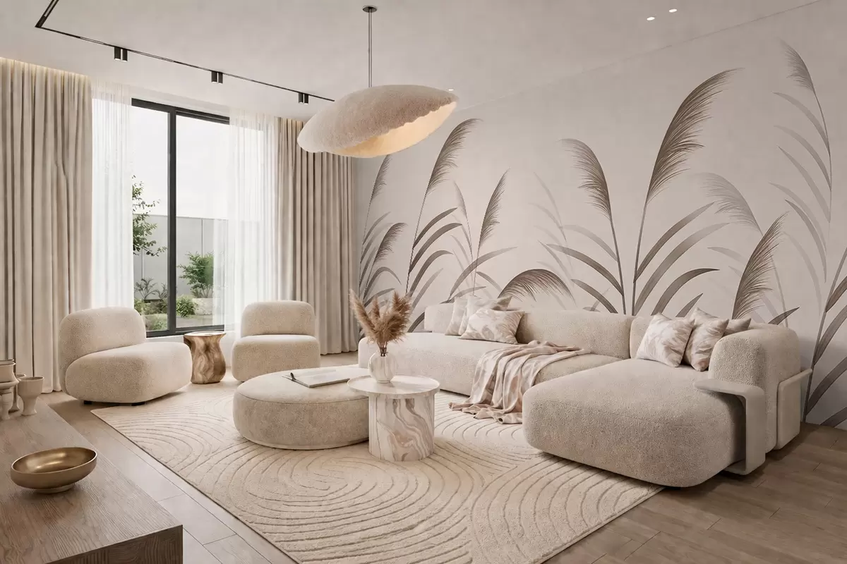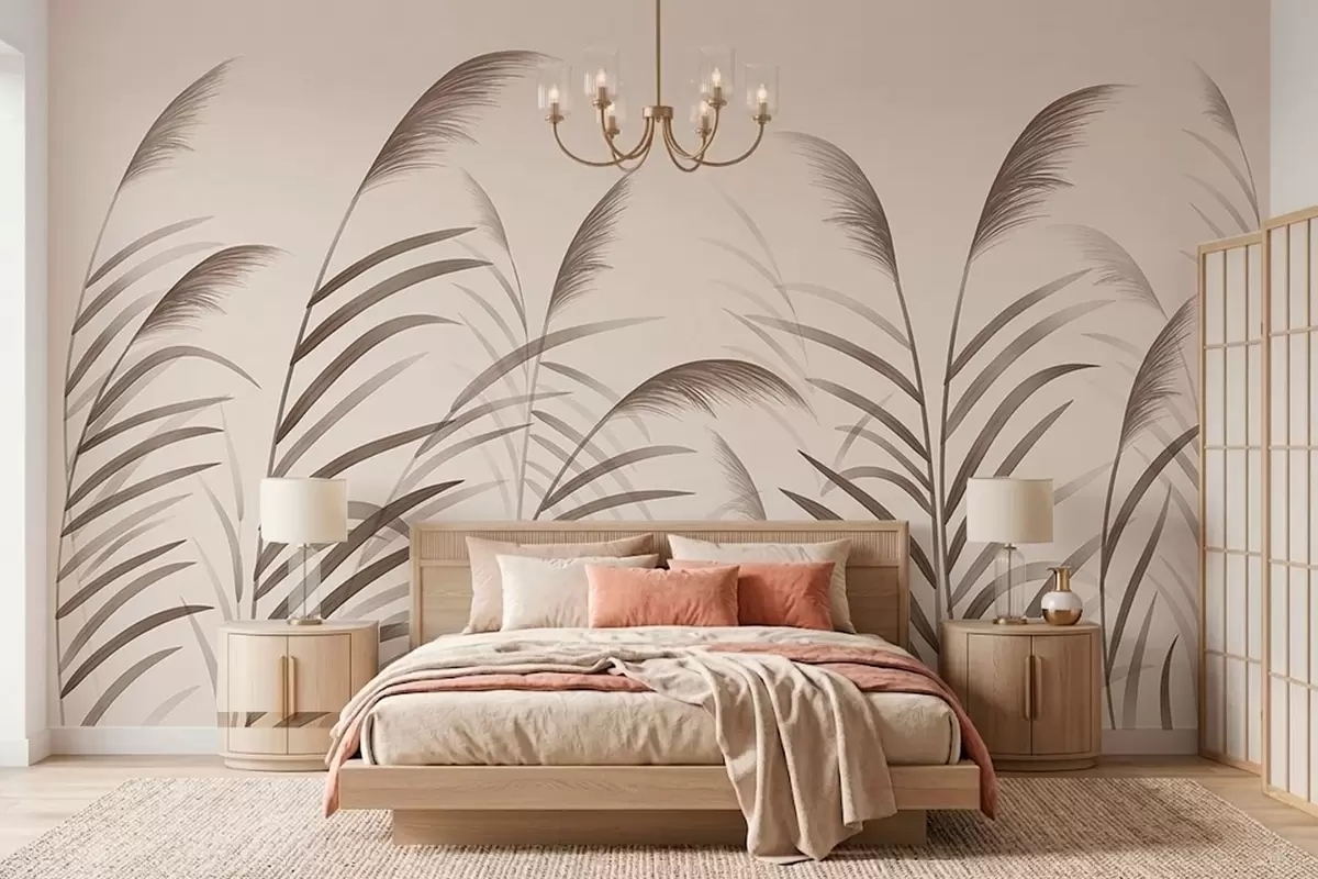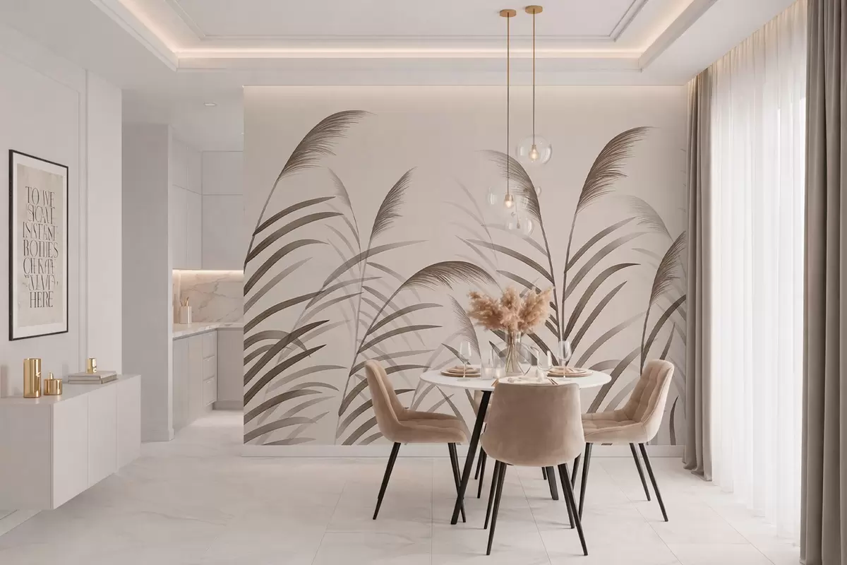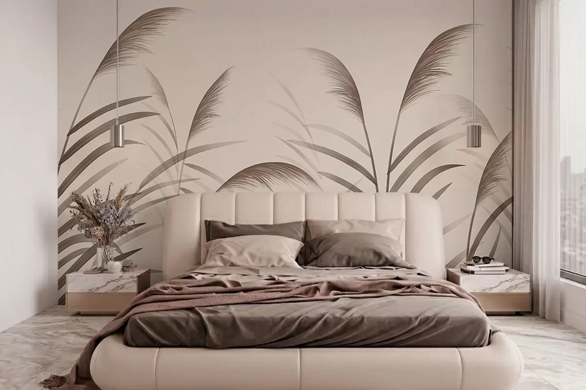 Minimalism reed silhouettes in beige tones - Wall mural (No. w05432)