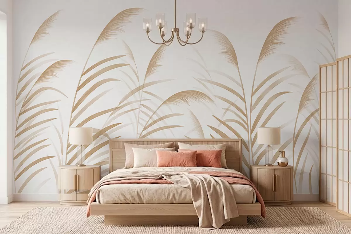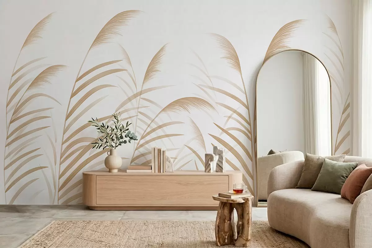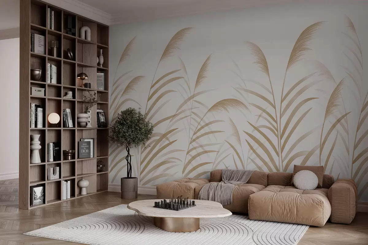 Minimalism grasses in light beige tones - Wall mural (No. w05432v1)