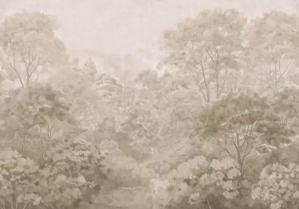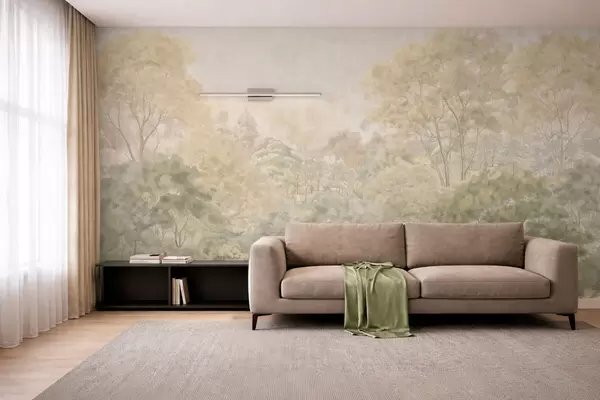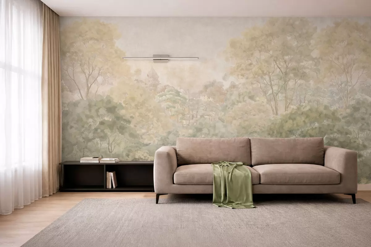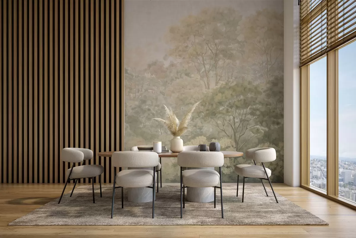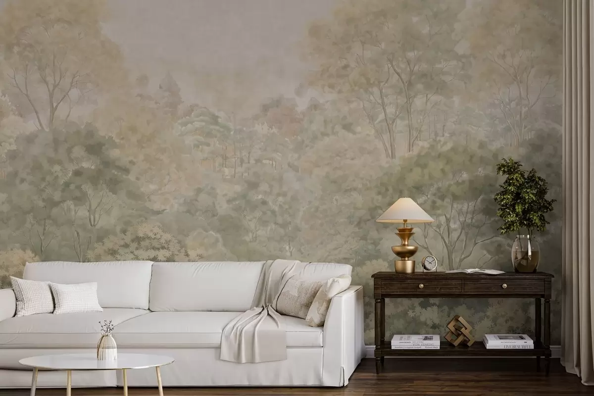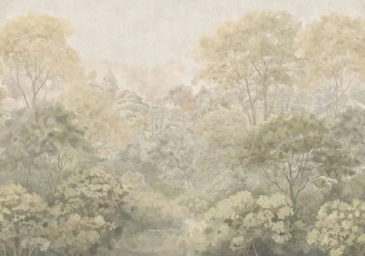 Vintage forest landscape in muted green tones - Wall mural (No. w05433)