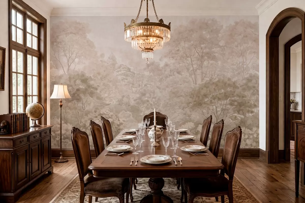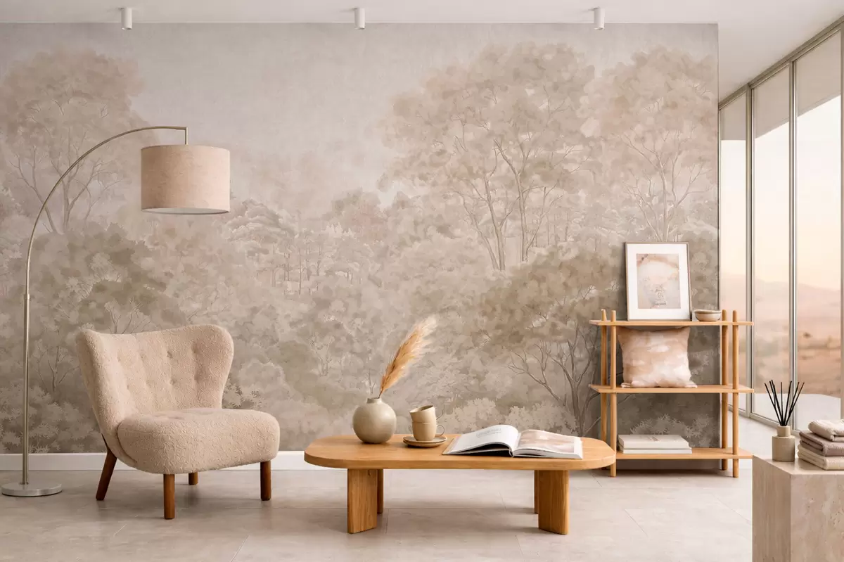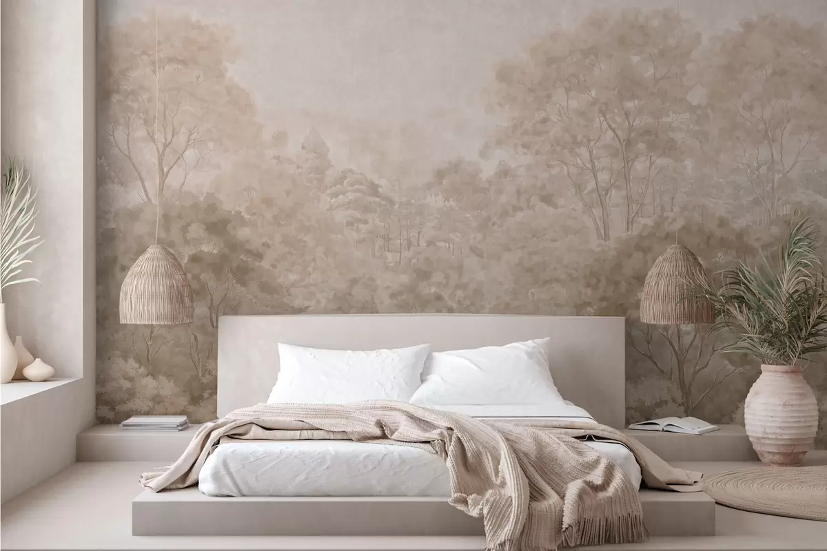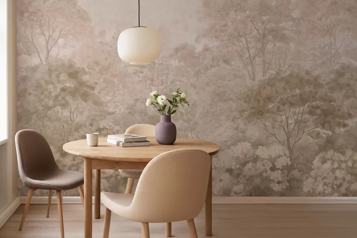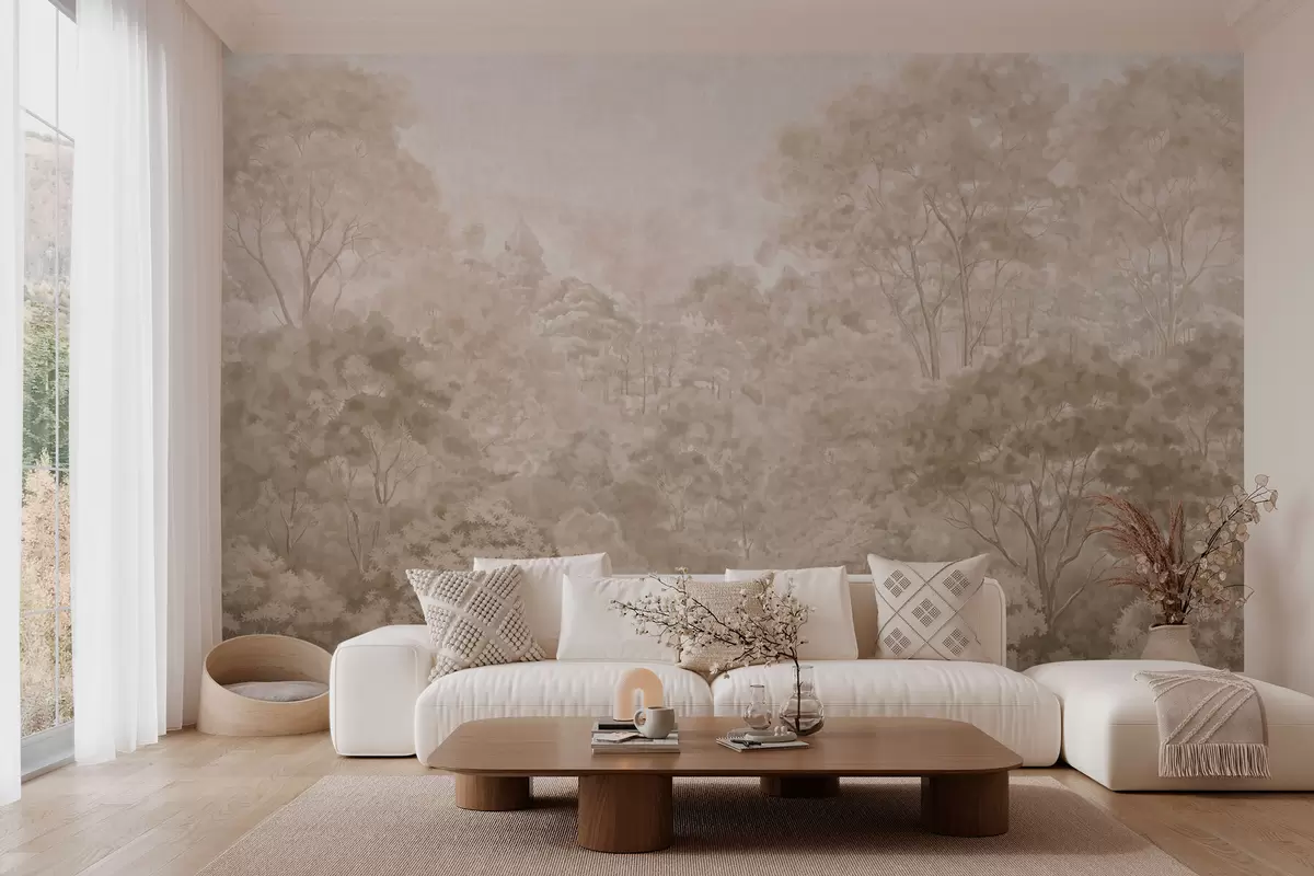 Vintage forest landscape in warm beige tones - Wall mural (No. w05433v1)