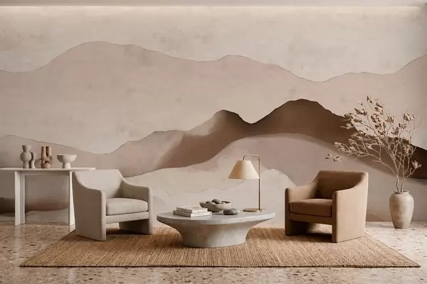 Abstract mountains in the Japandi and minimalist styles - Wall mural (No. w05434)