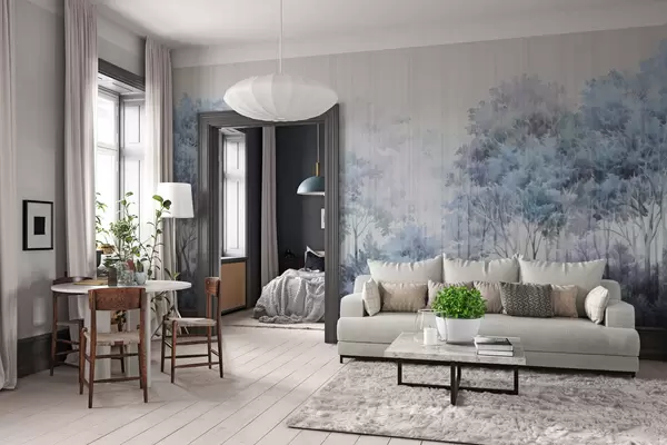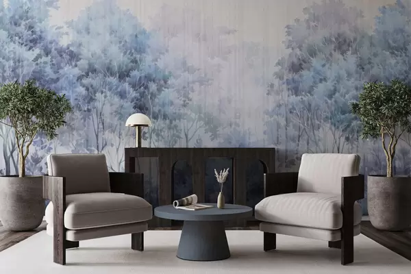 Leafy forest and lines - Wall mural (No. w05442v1)
