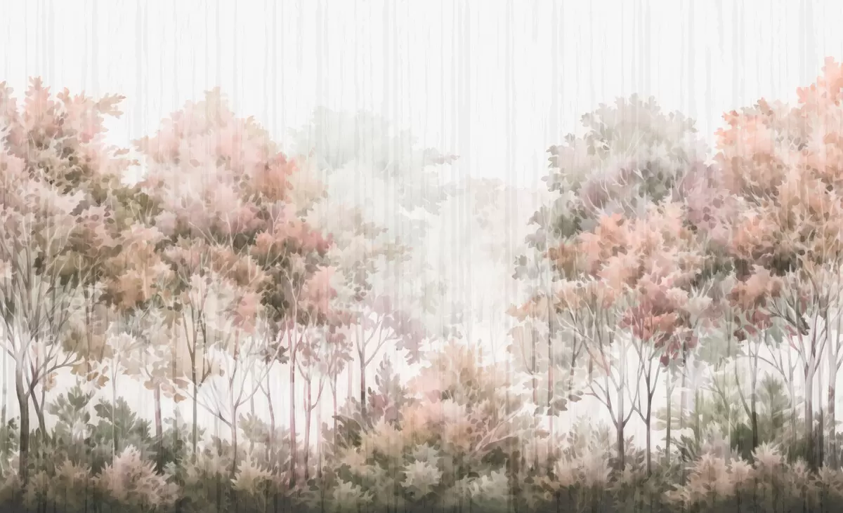 Leafy forest and lines - Wall mural (No. w05442v2)