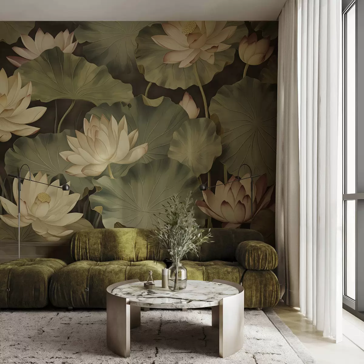 Vintage lotus blooms - Wall mural (No. w05445)