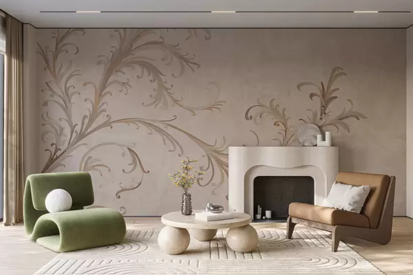 Vintage ornaments on a grunge wall - Wall mural (No. w05490)