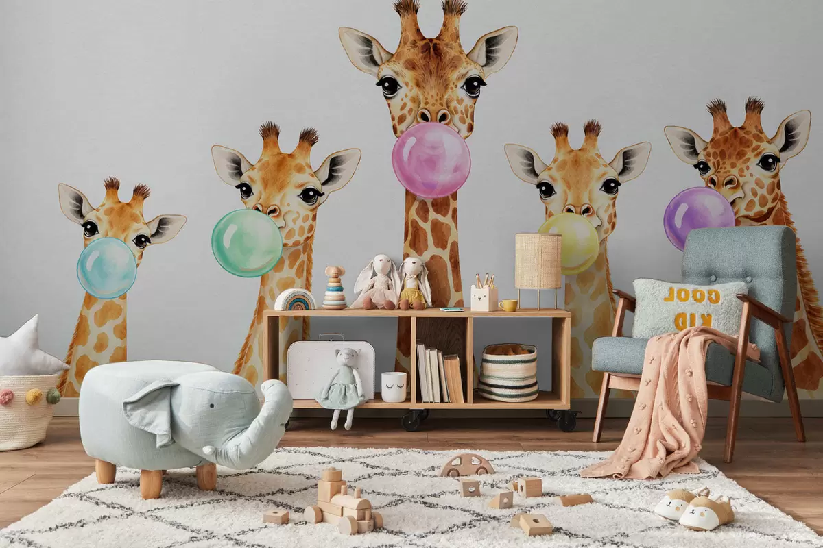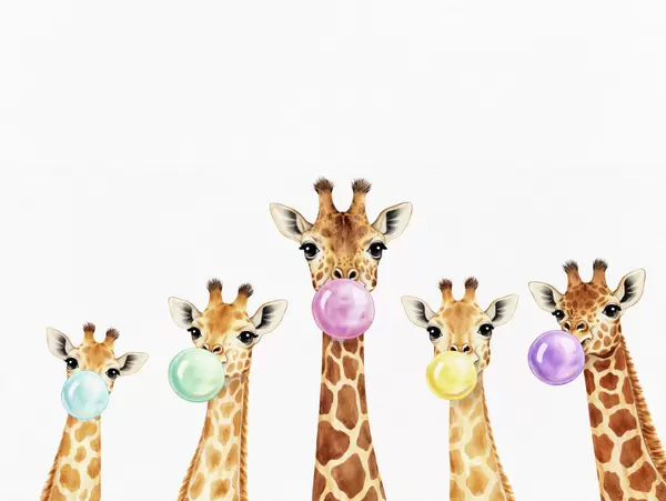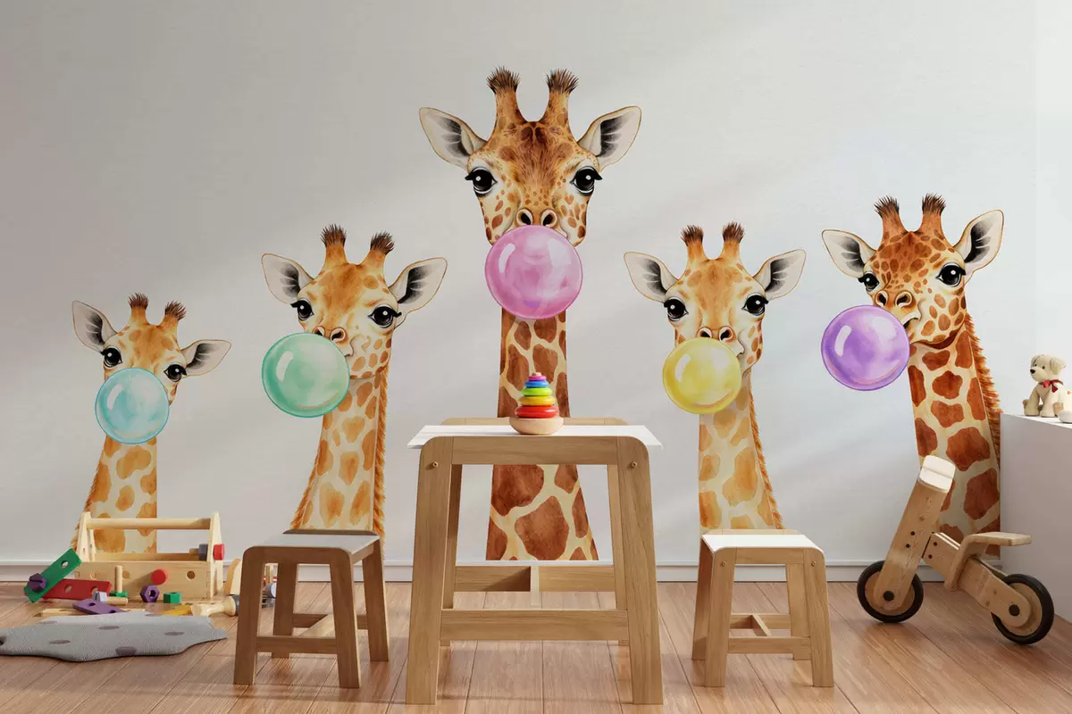 Giraffes with bubble gum - Wall mural (No. w05492)