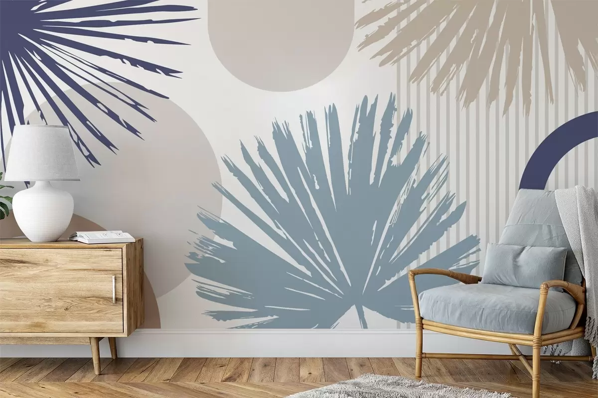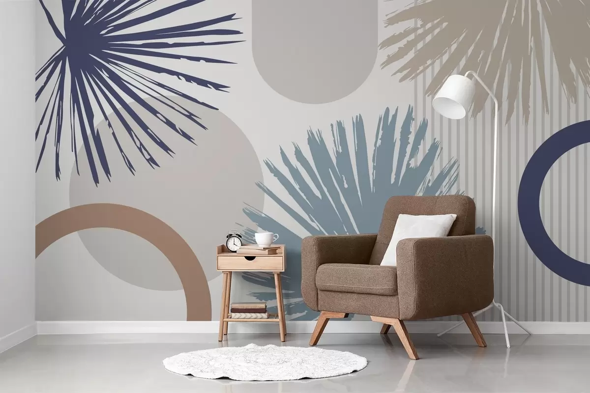 Abstraction with plant and geometric silhouettes - Wall mural (No. w05505v1)