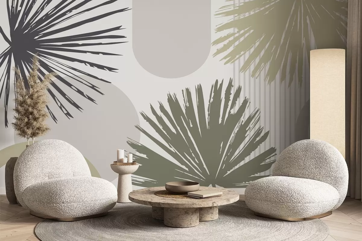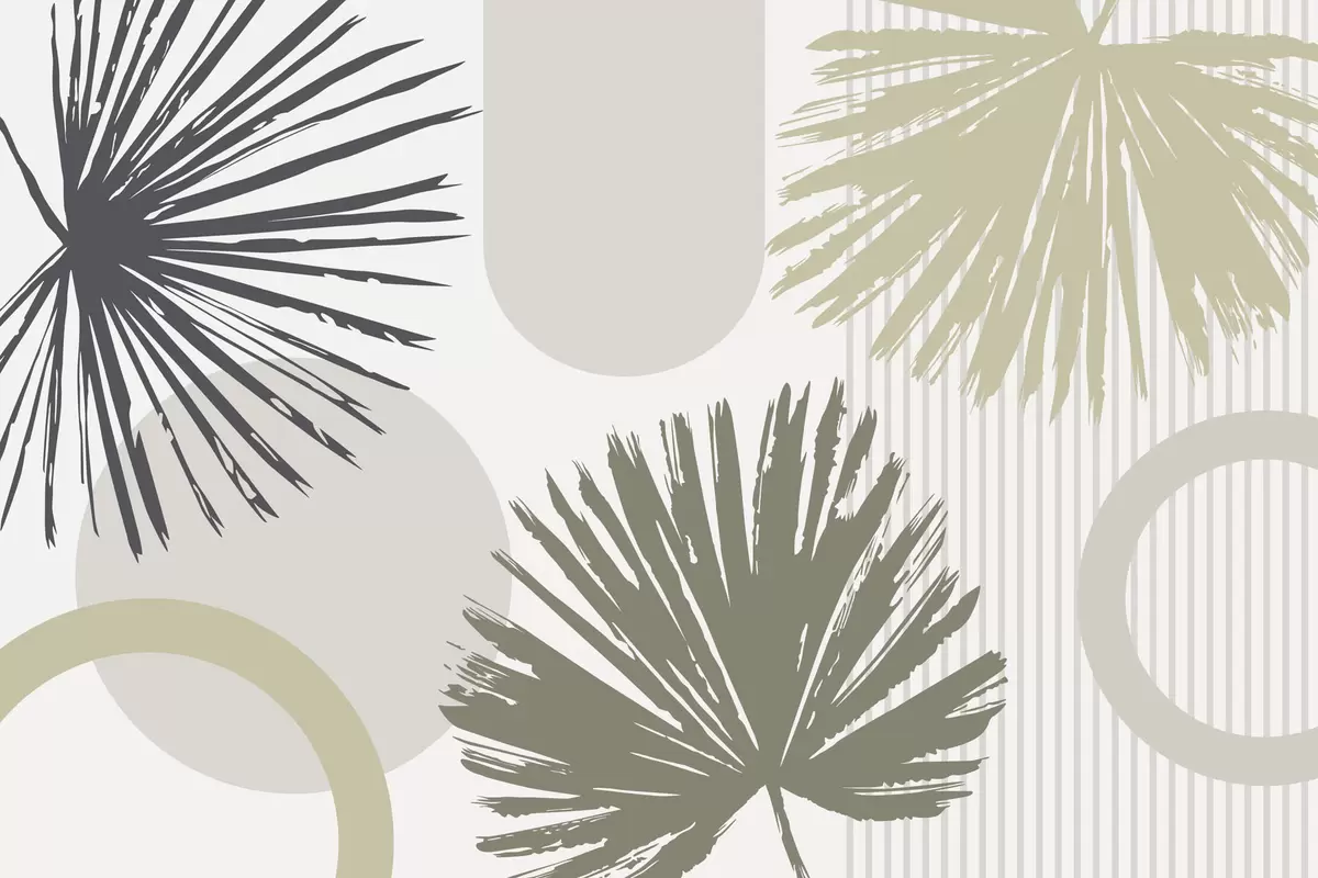 Abstraction with plant and geometric silhouettes - Wall mural (No. w05505v2)