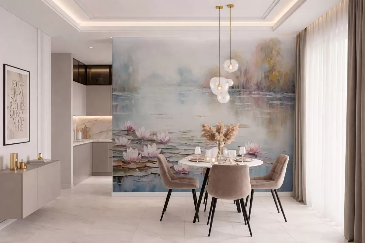 Impressionism lake with water lilies and soft light - Wall mural (No. w05515)