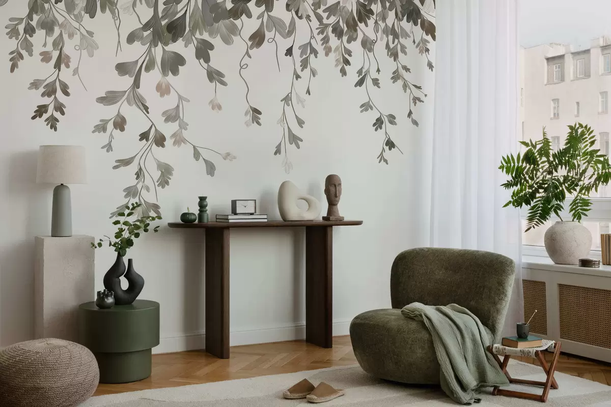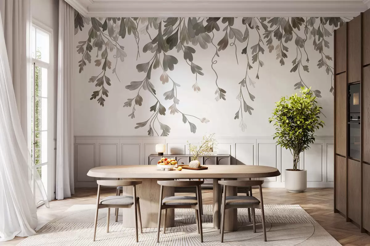 Delicate hanging leaves - Wall mural (No. w05526)