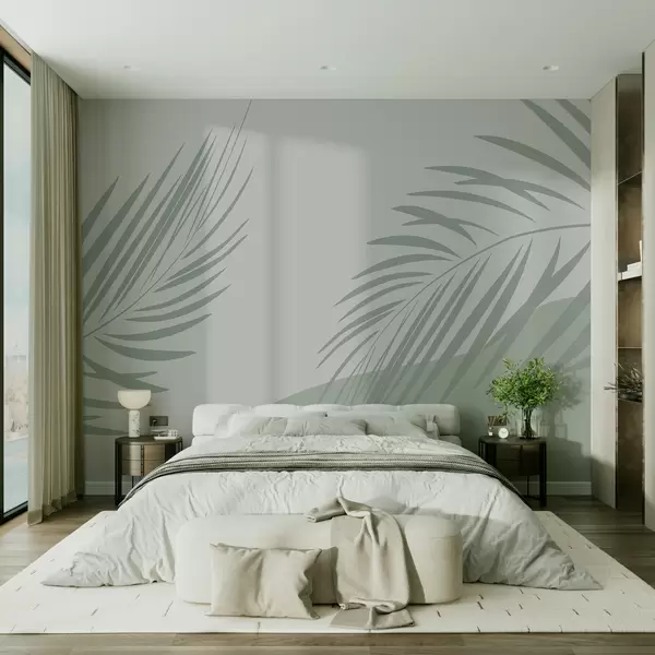 Tropical leaves on a light background - Wall mural (No. w08016)
