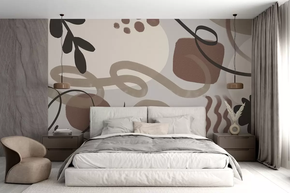 Abstract textured minimalistic modern print with shapes in earthy tones of brown, beige, and black - Wall mural (No. w08384)