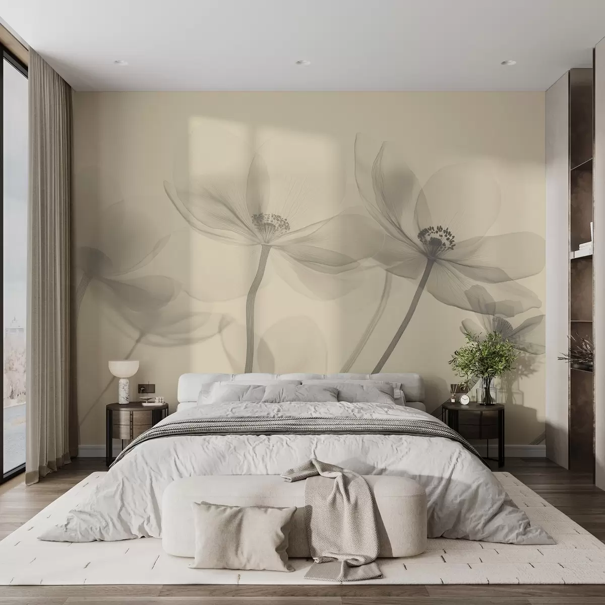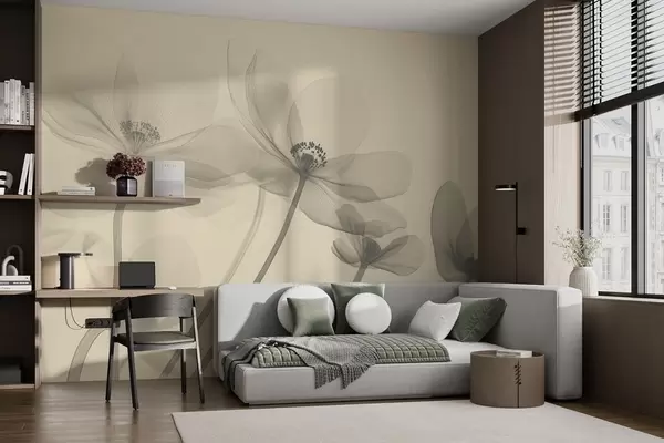 Airy wildflowers in a beige tone - Wall mural (No. w08490)