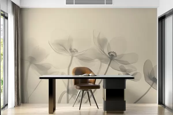 Airy wildflowers in a beige tone - Wall mural (No. w08490)