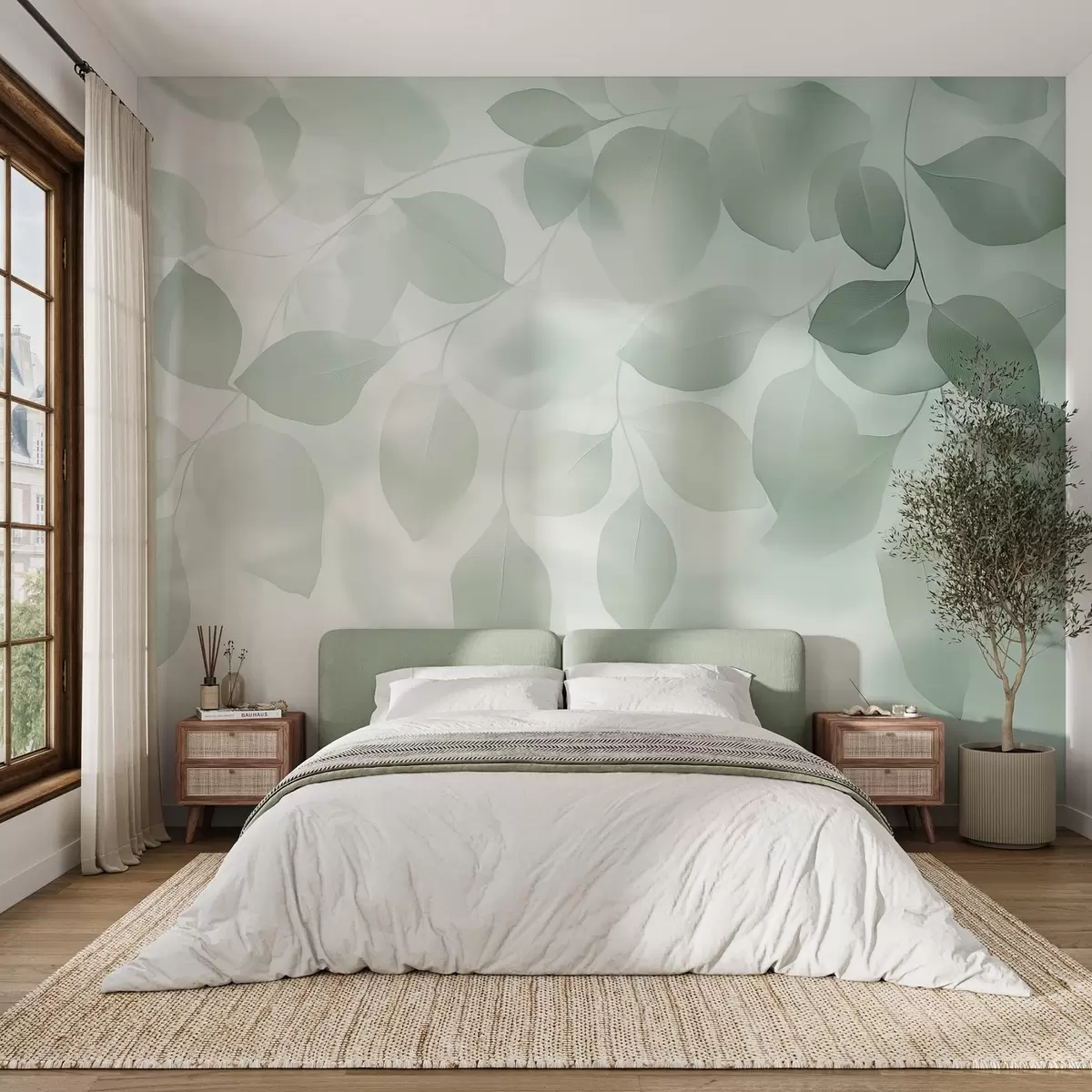Floral abstraction of leaves in green tones - Wall mural (No. w08492v1)