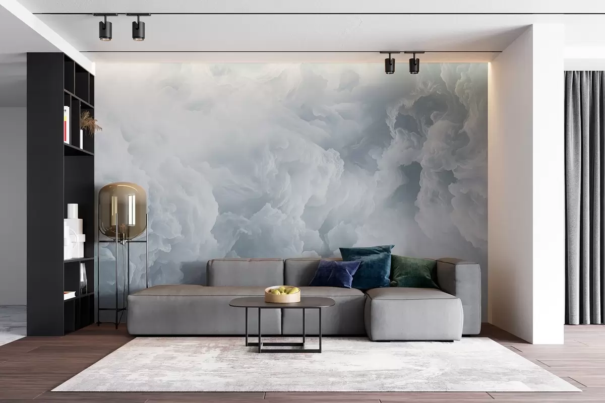 Airy white and blue clouds floating in the sky - Wall mural (No. w08495)